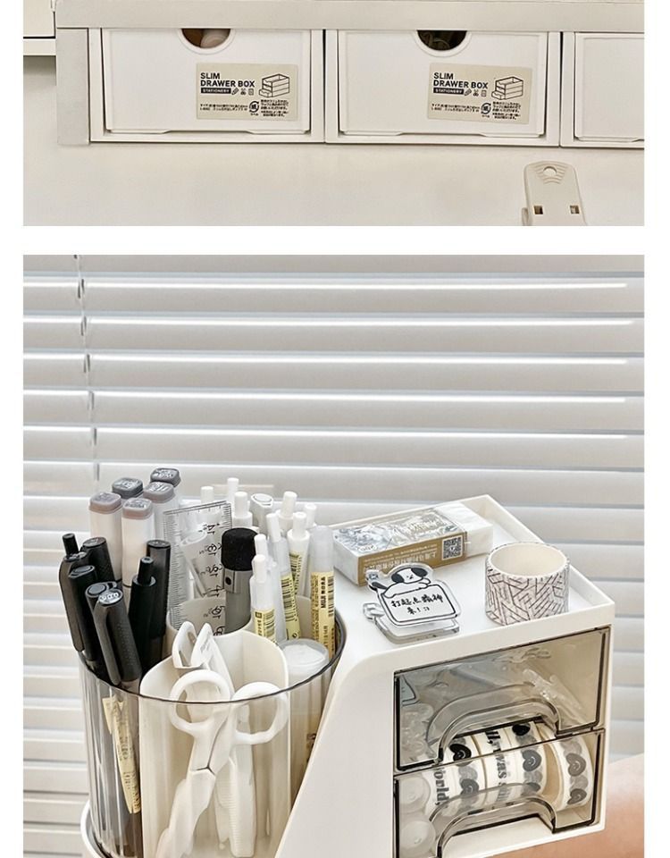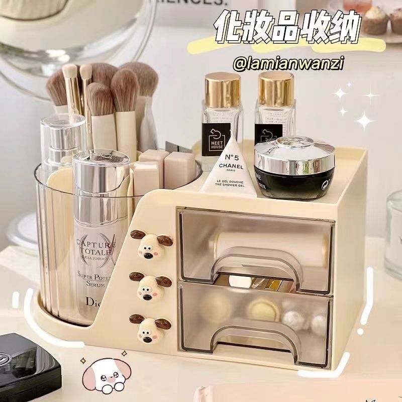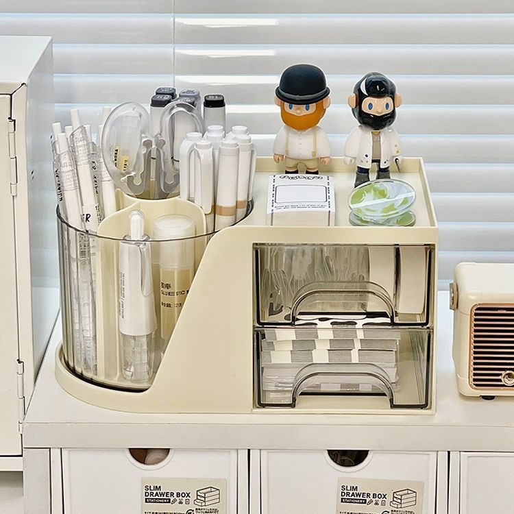 • 크림 업그레이드 모델 + 무료 입체 스티커 [회전 가능/6 그리드 + 2 서랍 보관함]
