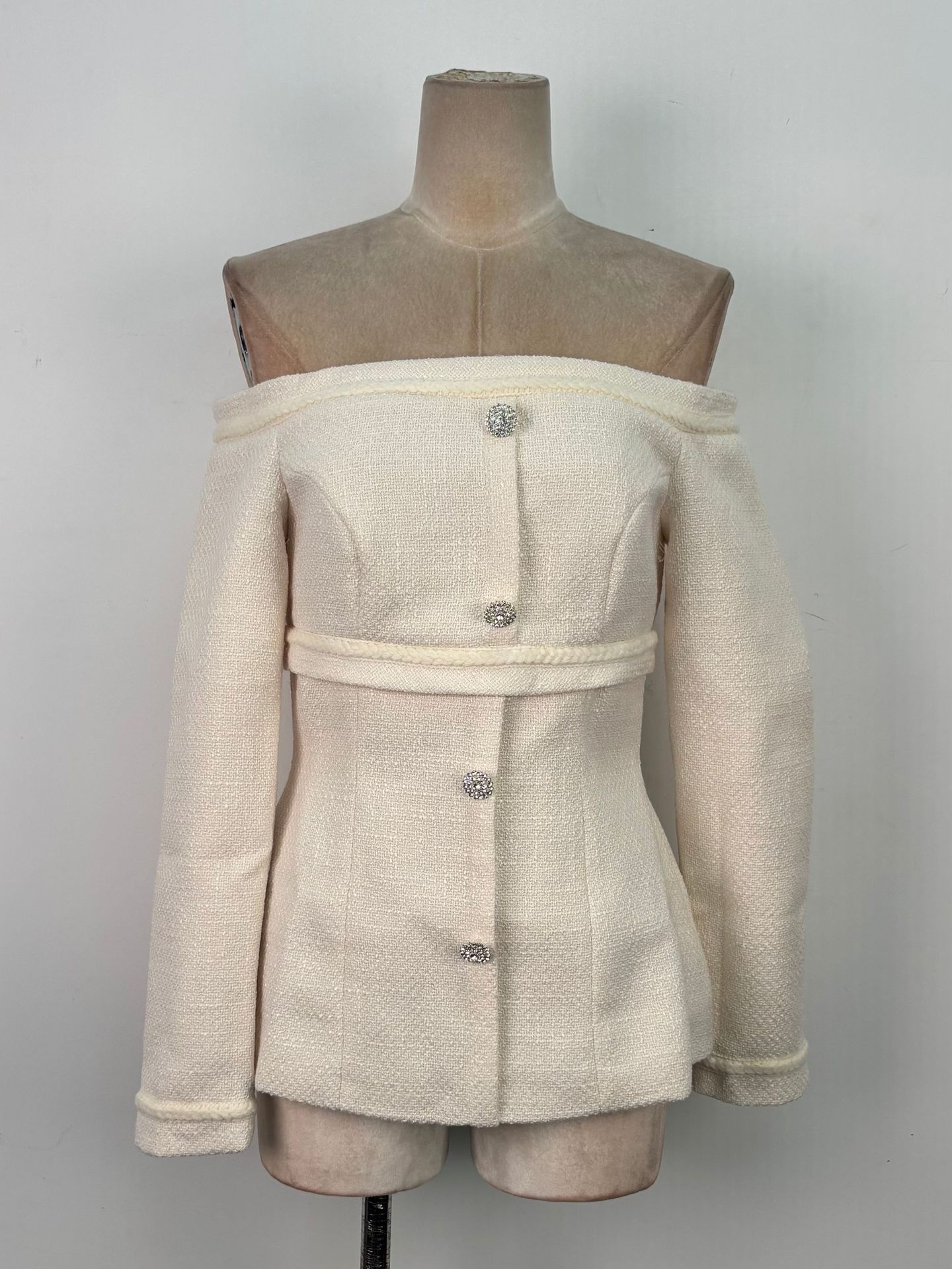 베트남 디자인의 독특한 원숄더 허리라인 조절 가능한 재킷 탑 신상 우아한 정장 스커트 50083스토어 가기