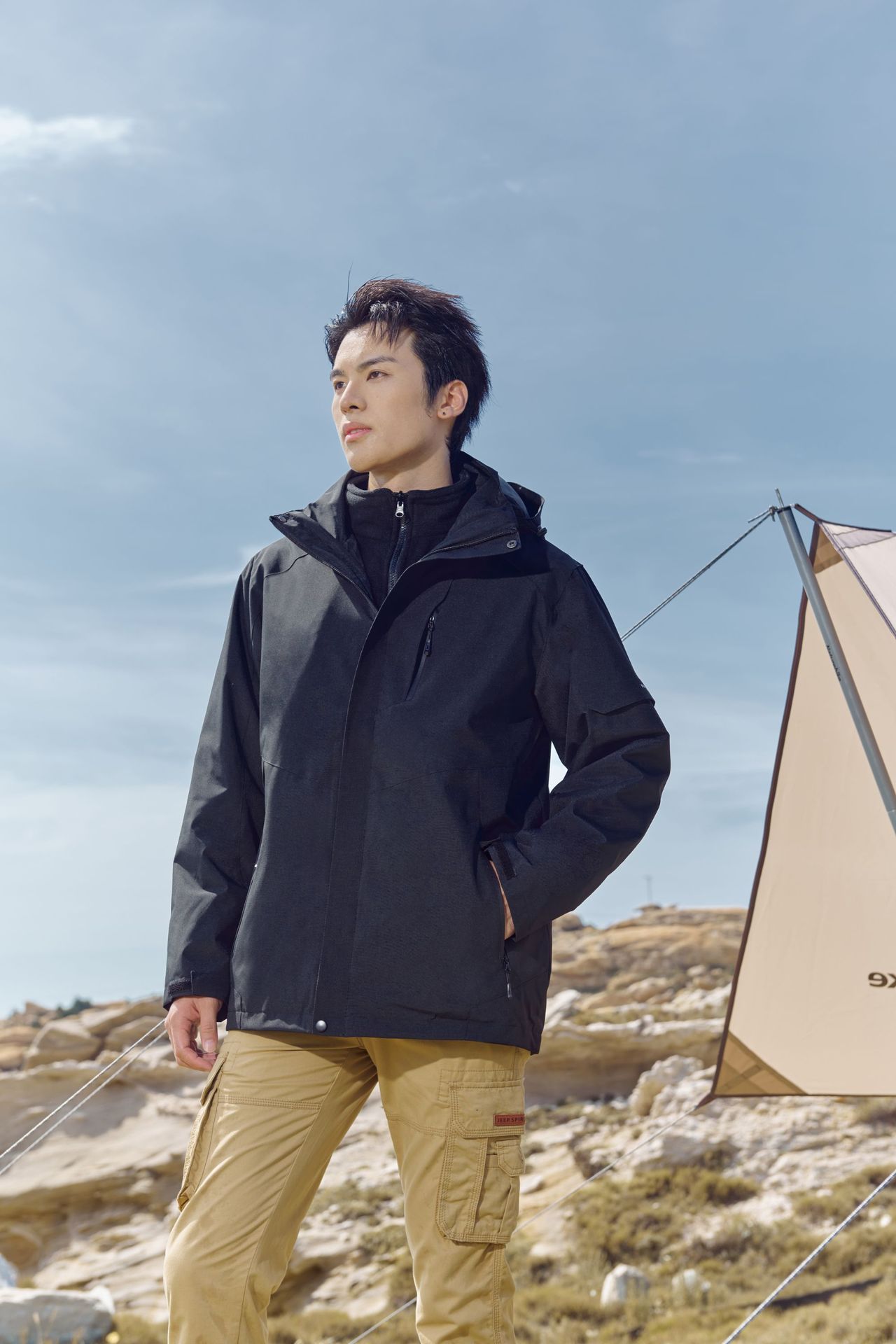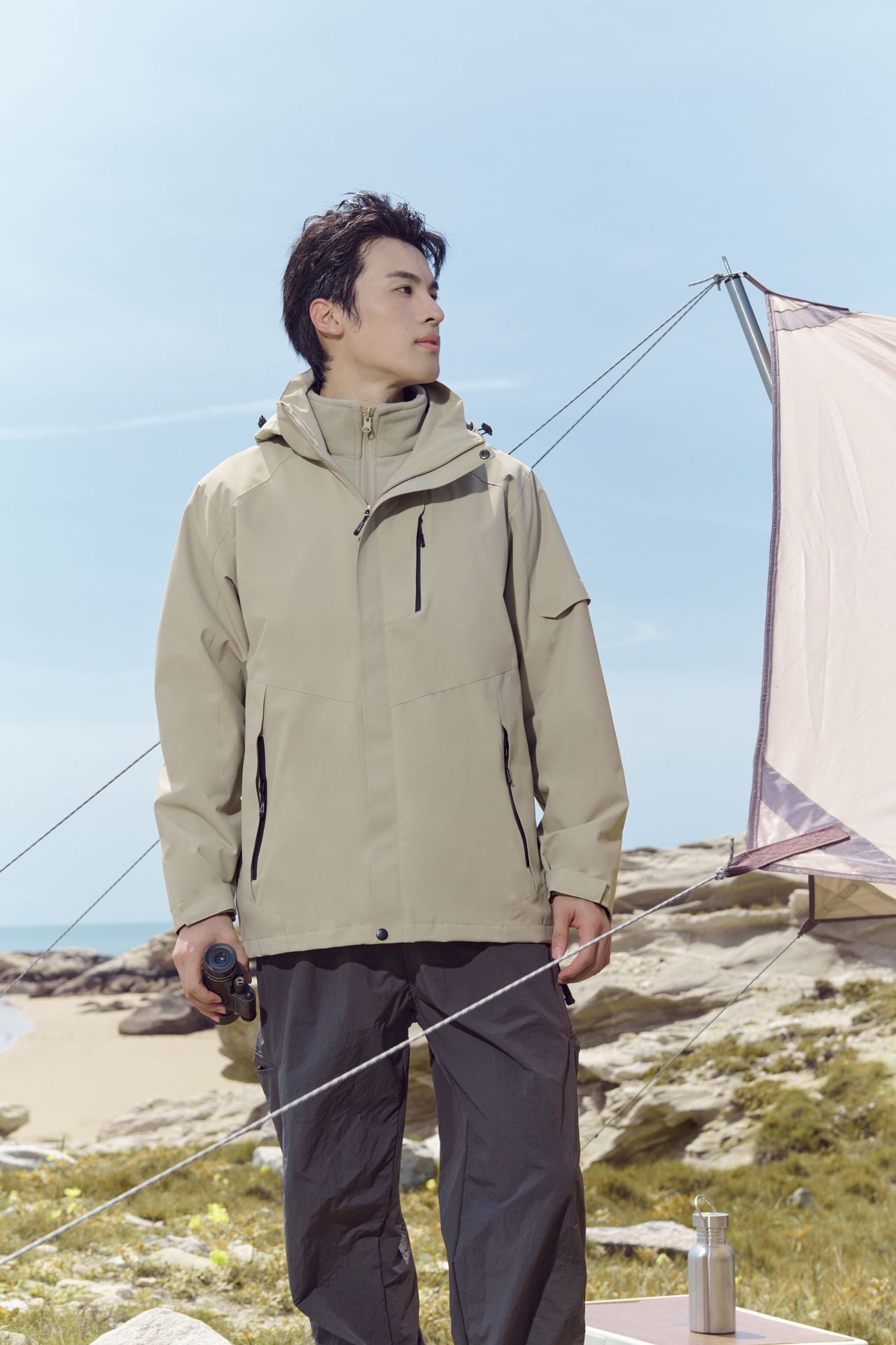 가을과 겨울 3 대 1 충전 옷 탈착식 물 튀는 증거 작업복 남성과 여성을위한 야외 레저 방풍 등산 세트스토어 가기