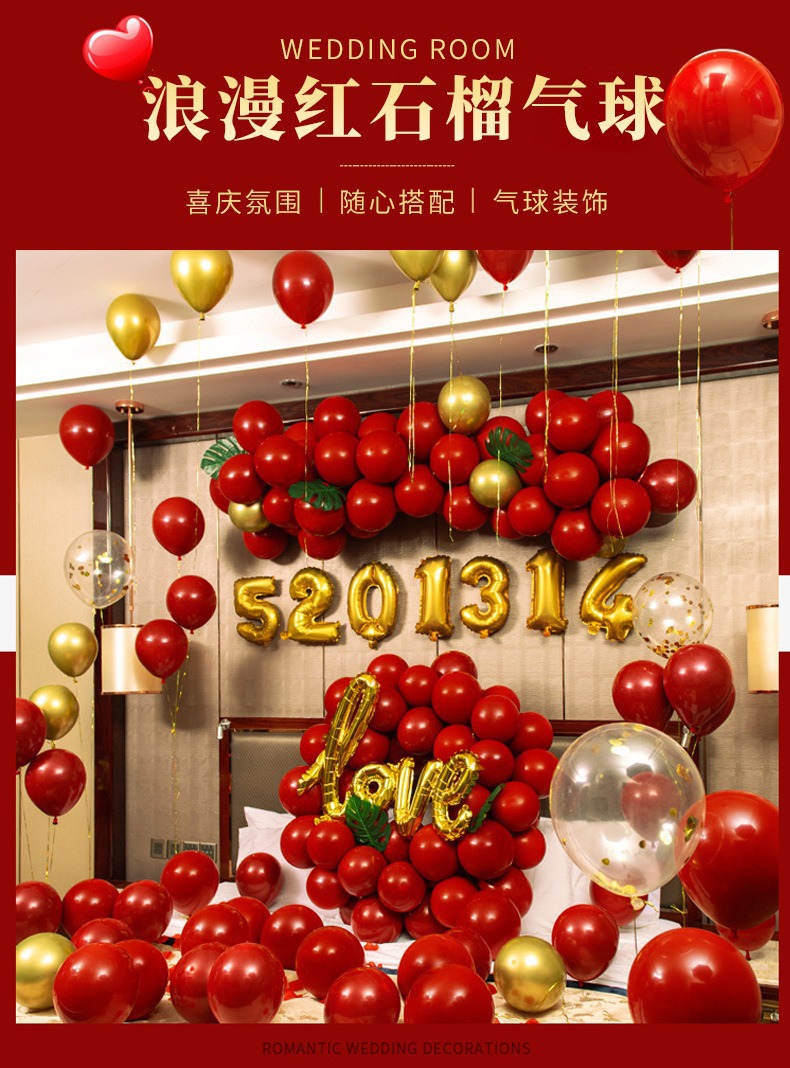 10 인치 싱글 레이어 레드 석류 레드 샤넬 도파민 컬러 웨딩 풍선 웨딩 룸 장식 풍선
