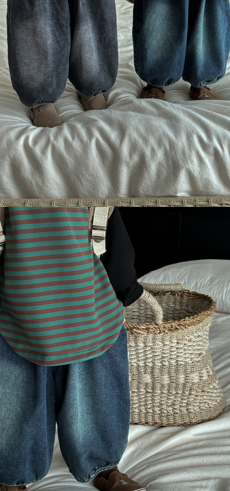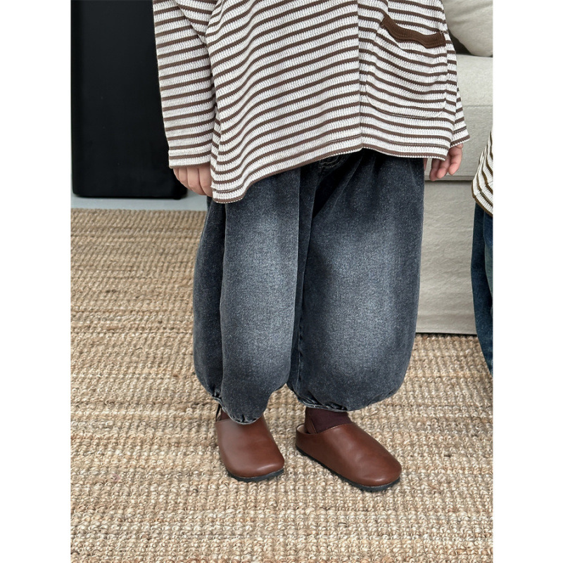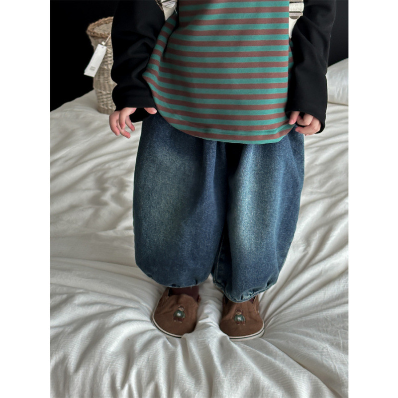 어린이 청바지 2025 가을 남자와 여자의 아기 한국 느슨한 블루머스 서양식 데님 넓은 다리 바지 캐주얼스토어 가기