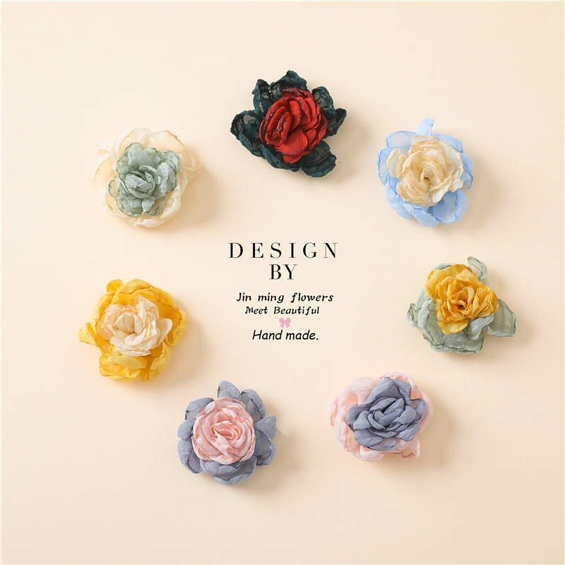 DIY 패브릭 버닝 에지 거즈 카멜리아 액세서리 수제 플로렛 액세서리 의류 액세서리 원사 연소 에지 멀티 레이어