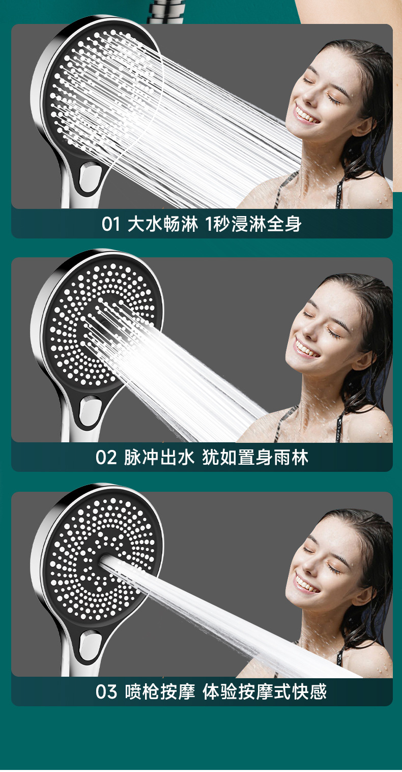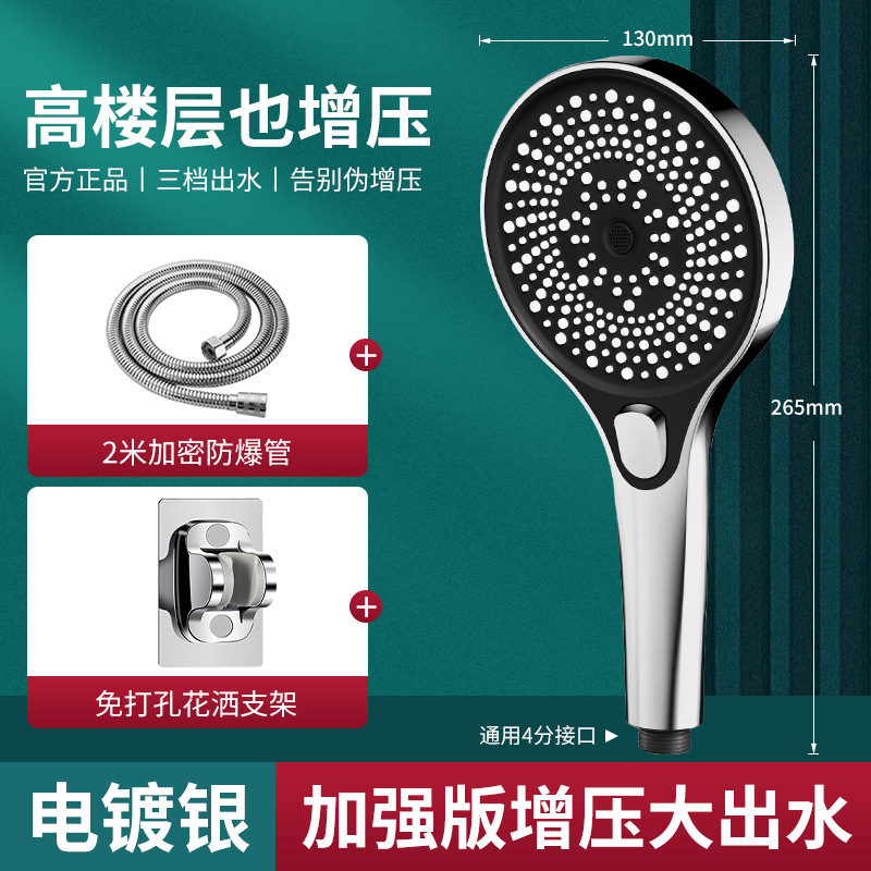 • [전기도금] 3단 별빛 펄스 핸드 샤워기 + 샤워 파이프 1.5m개 + 샤워 브래킷