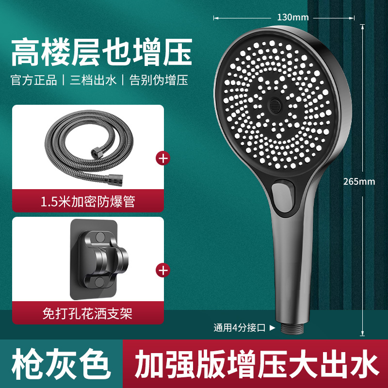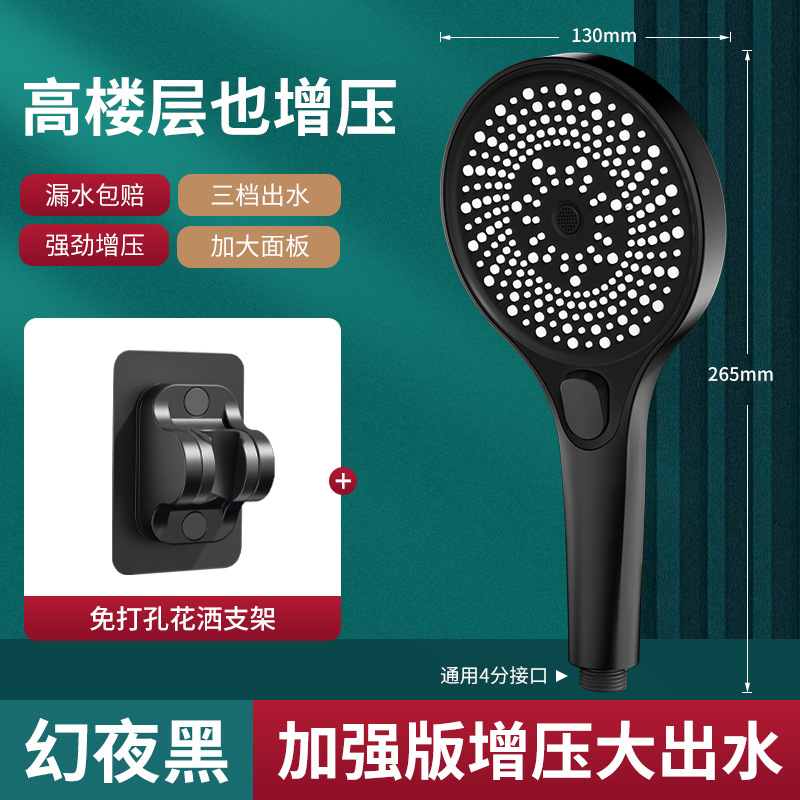 • [블랙] 3단 별빛 펄스 핸드 샤워기 + 1.5m 샤워 파이프 + 샤워 브래킷
