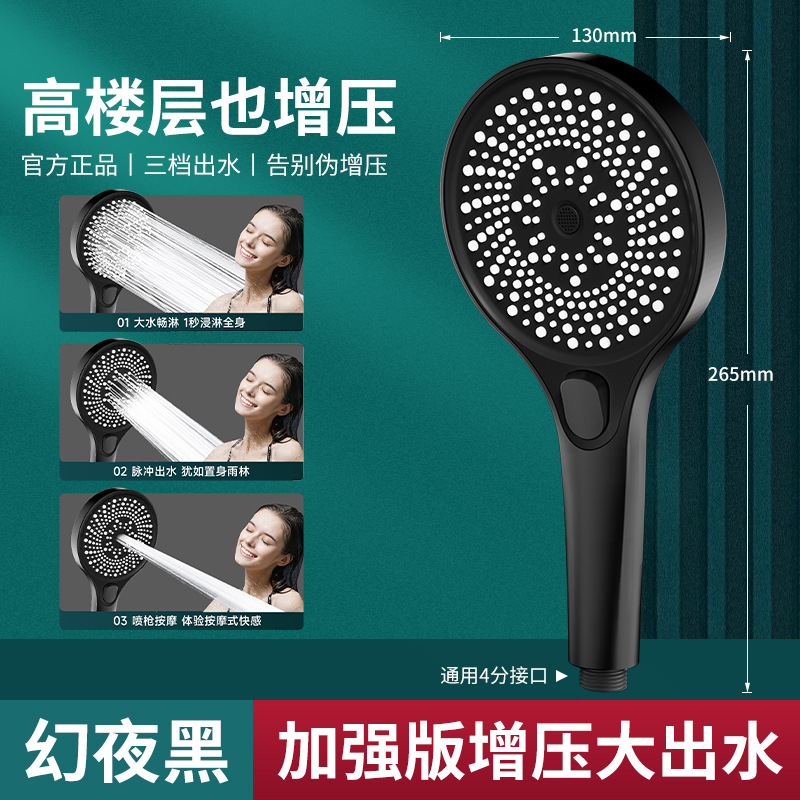 • [블랙] 3단 별빛 펄스 핸드 샤워기 + 샤워 파이프 1.5m개