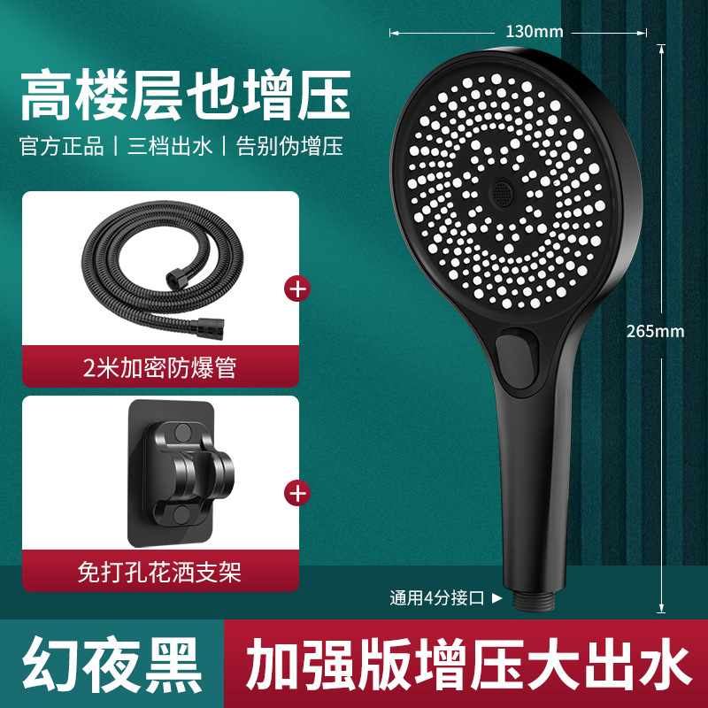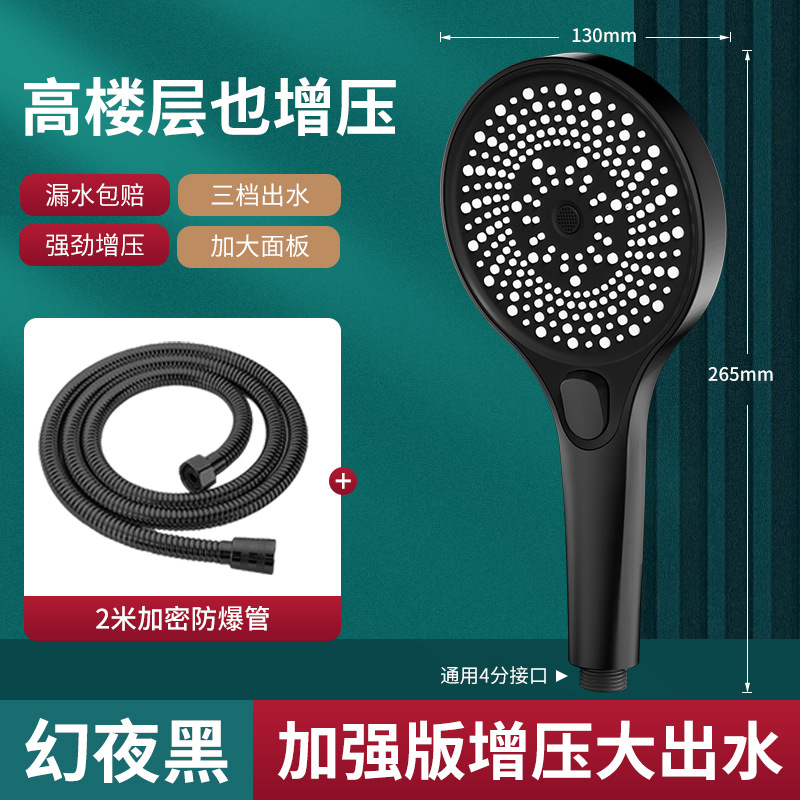 • [블랙] 3단 별빛 펄스 핸드 샤워기 + 샤워 파이프 2m개