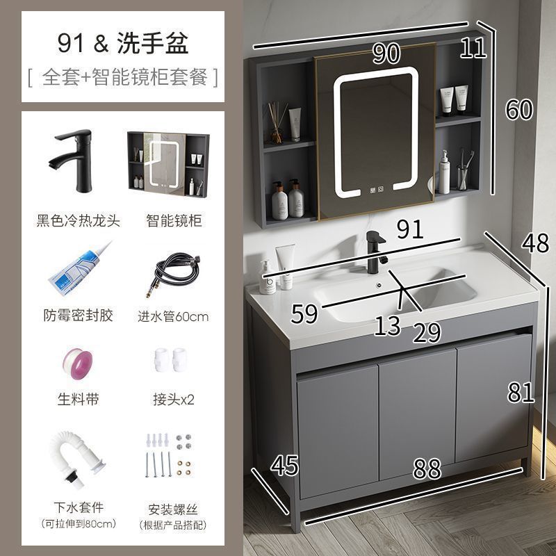 • Haoyijia 91CM 세라믹 세면대 바닥 캐비닛-+스마트 거울 캐비닛#