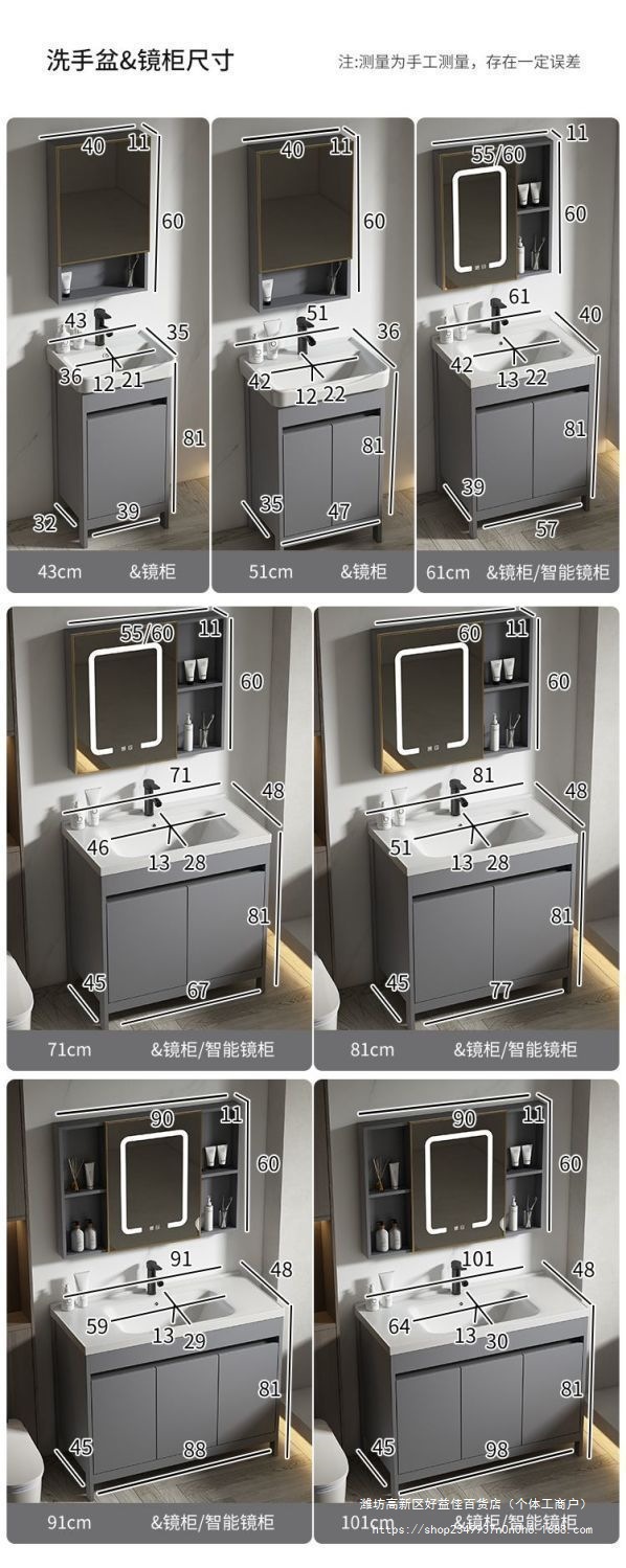 • Haoyijia 43CM 세라믹 세면대 바닥 캐비닛-+ 대형 도어 미러 캐비닛#