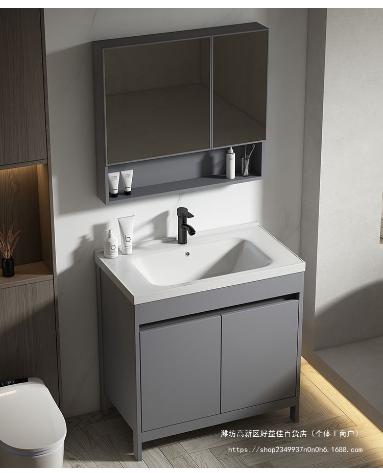 • Haoyijia 81CM 세라믹 세면대 바닥 캐비닛-+ 대형 도어 미러 캐비닛#