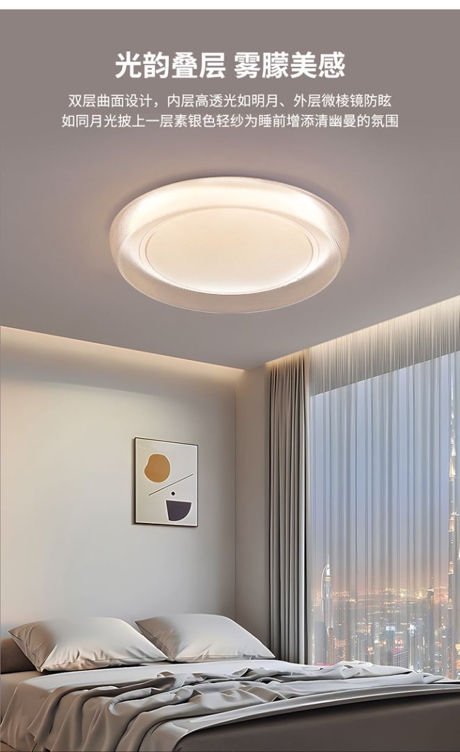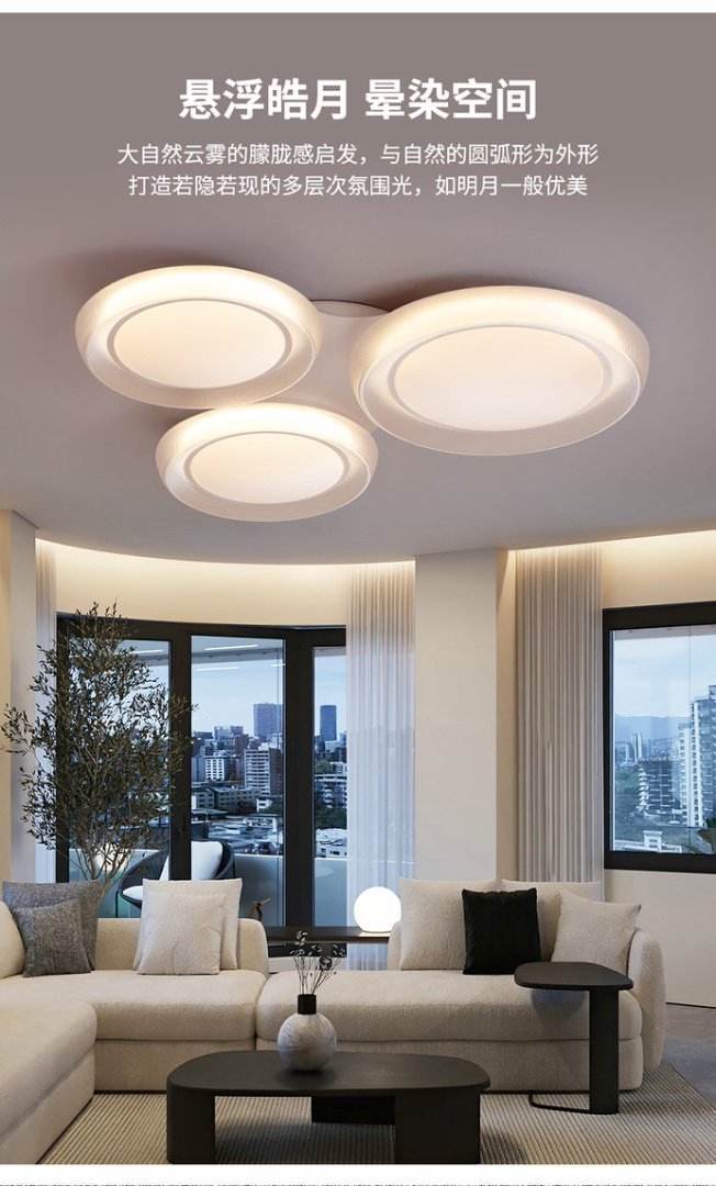 서스펜션 눈 보호 천장 램프 간단한 라운드 창조적 인 거실 간단한 현대 눈 보호 침실 크림 스타일 중산 램프