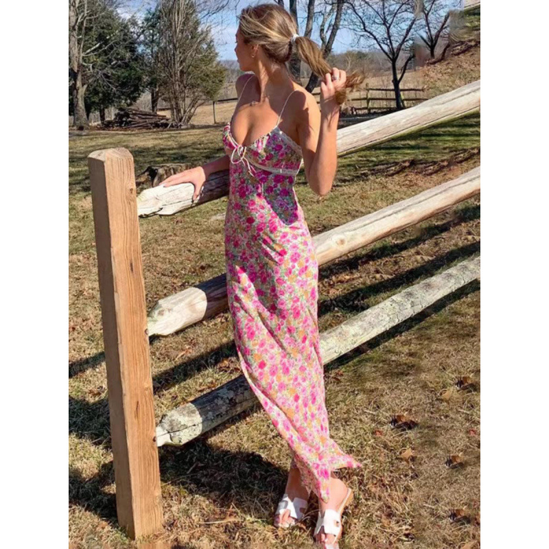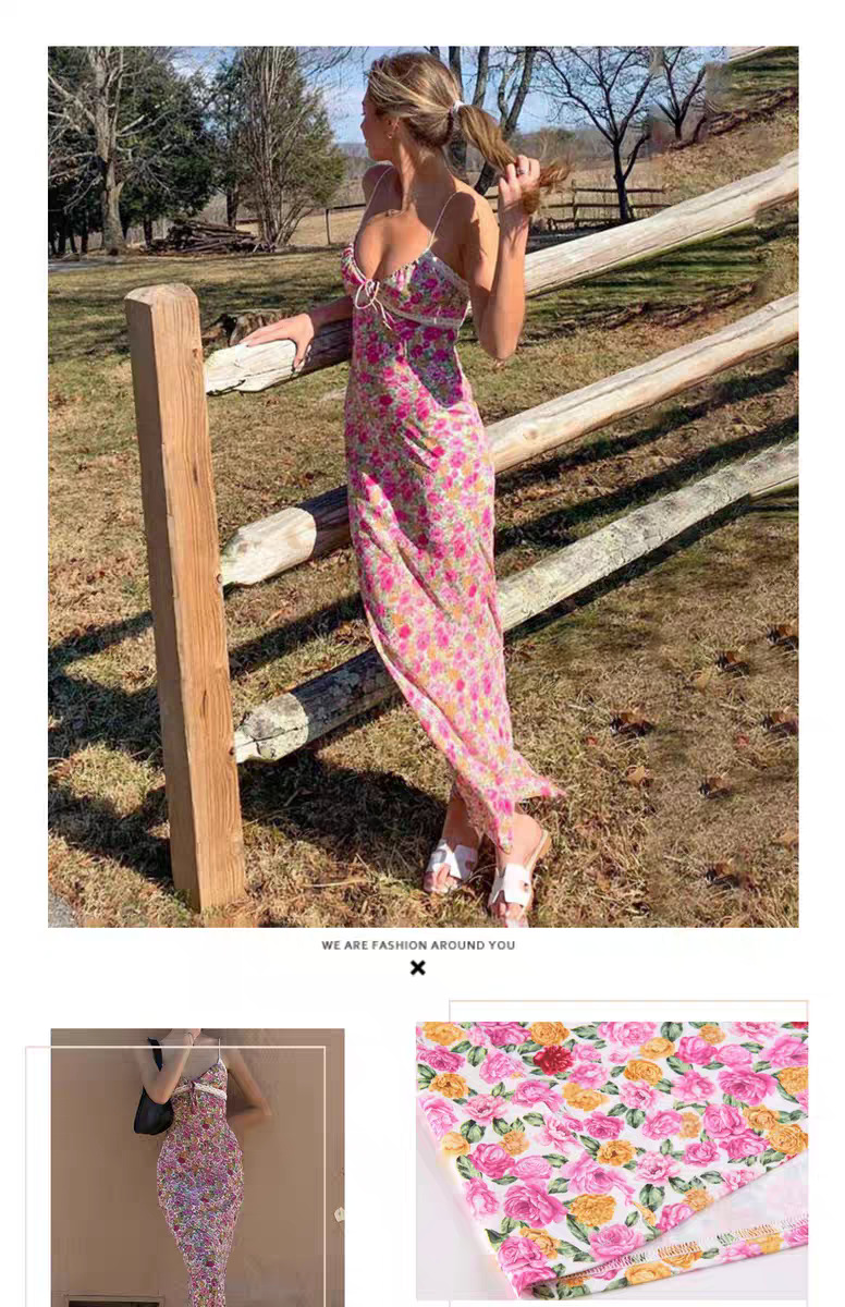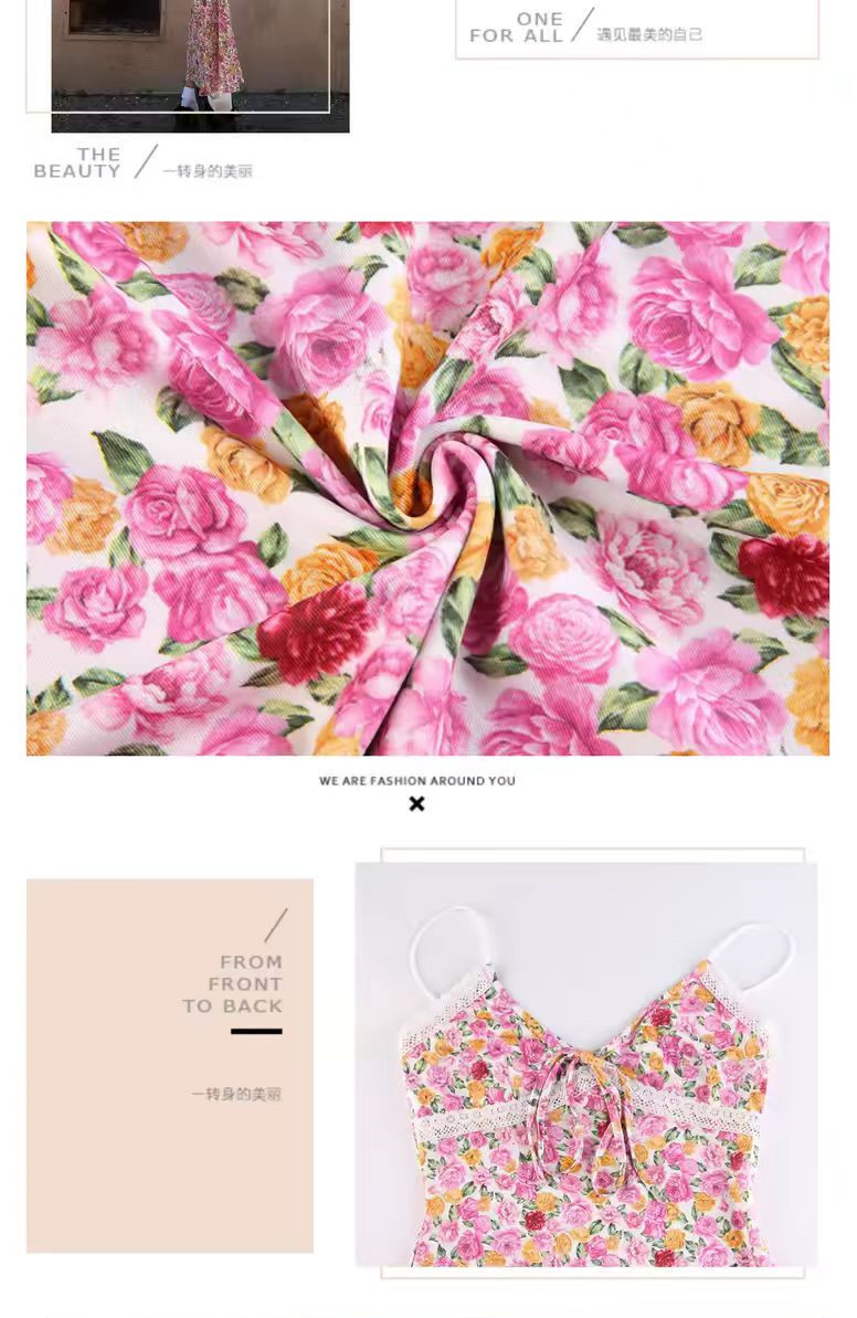 유럽과 미국의 여름 신선한 꽃 원피스 새로운 섹시한 V 넥 레이스 바느질 중장 원피스 여성스토어 가기