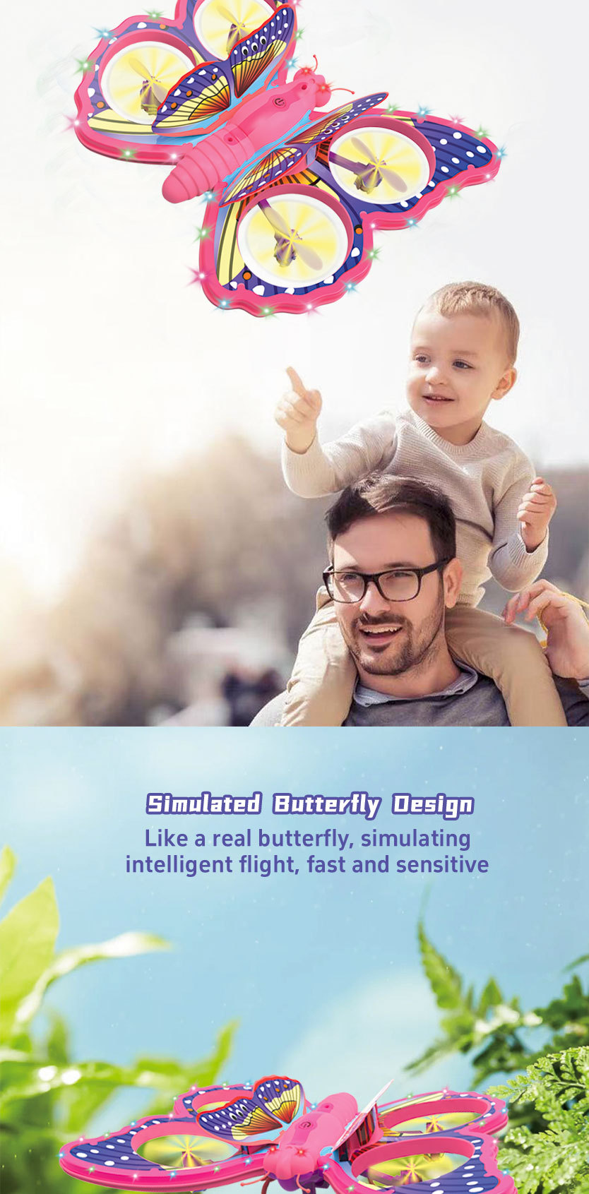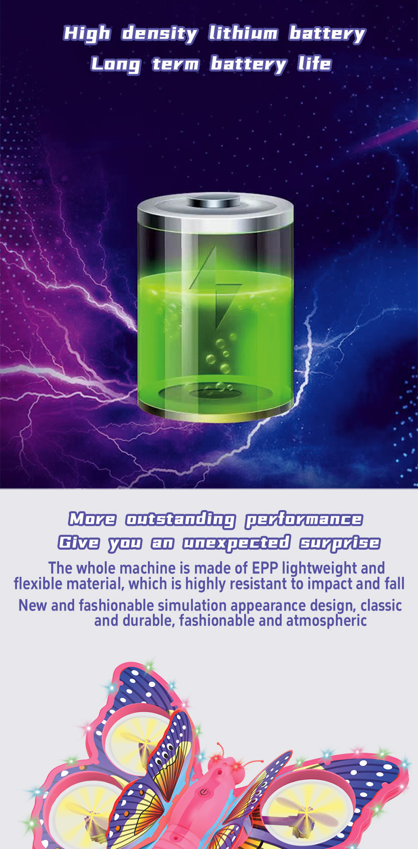 E0-25蝴蝶四旋翼无人机遥控飞机,可支持前后避障模式,环绕,前后左右翻滚,气压定高,LDE灯光版。
