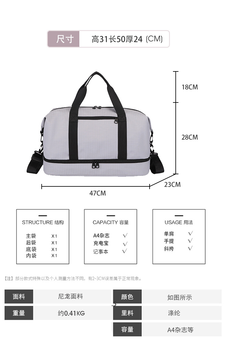 단거리 여행 가방 캐주얼 피트니스 가방 남성용 건조하고 젖은 별도의 독립 신발 빈 핸드백 커버 타이 로드 여행 수하물 가방