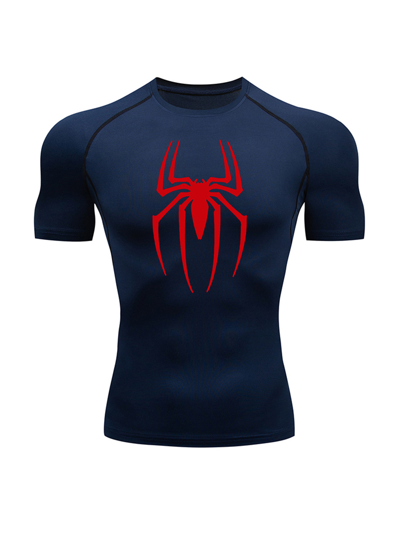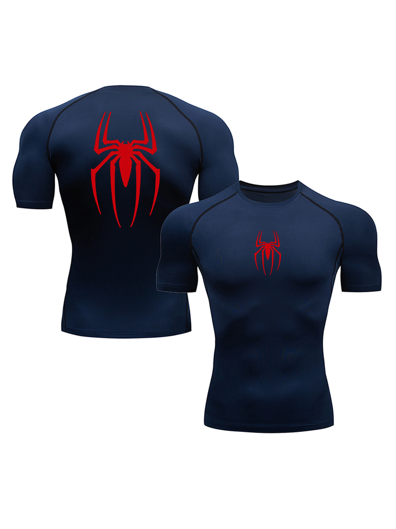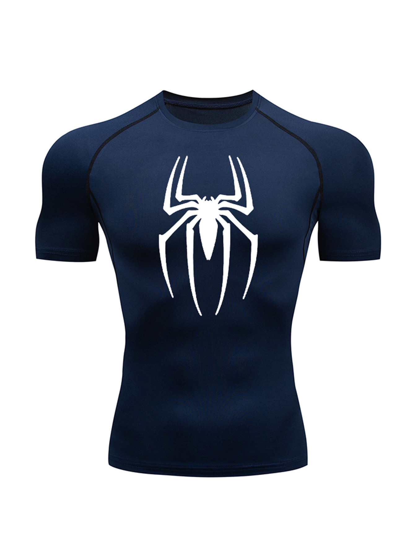 남자의 새로운 스포츠 반팔 러닝 티셔츠 피트니스 반팔 타이트 탑 남자의 스파이더 맨 인쇄 그림