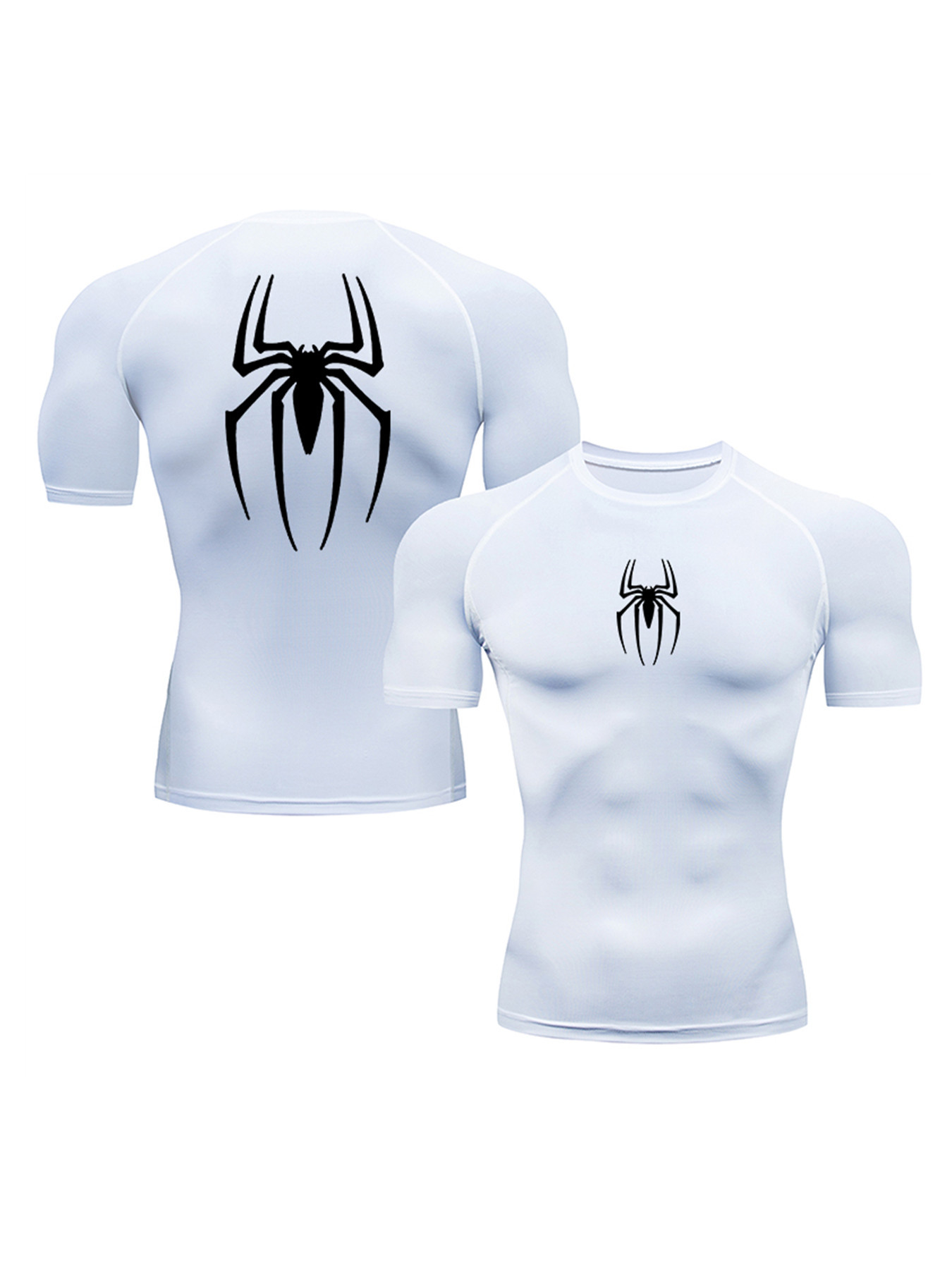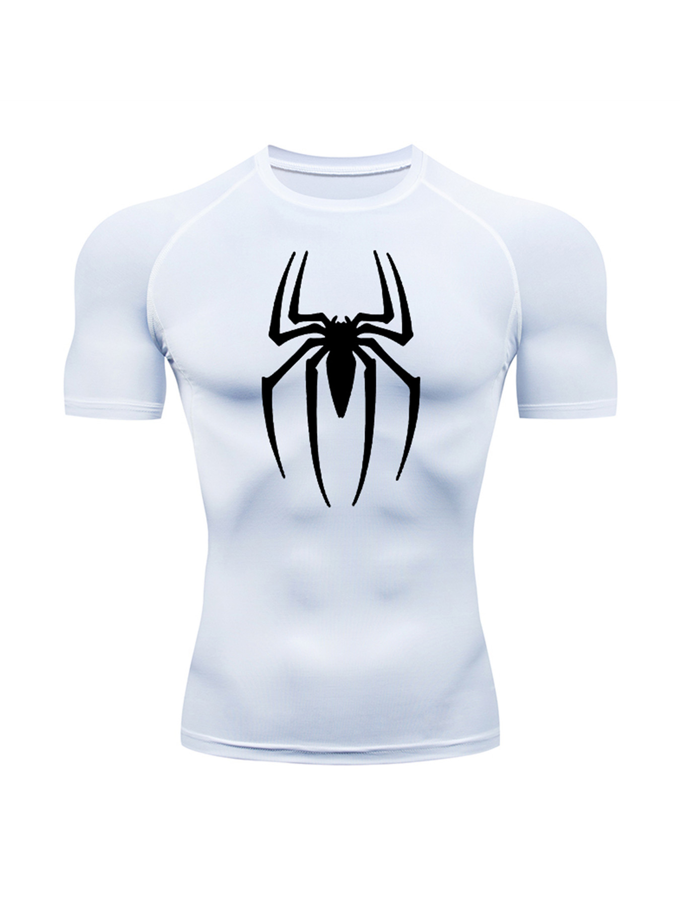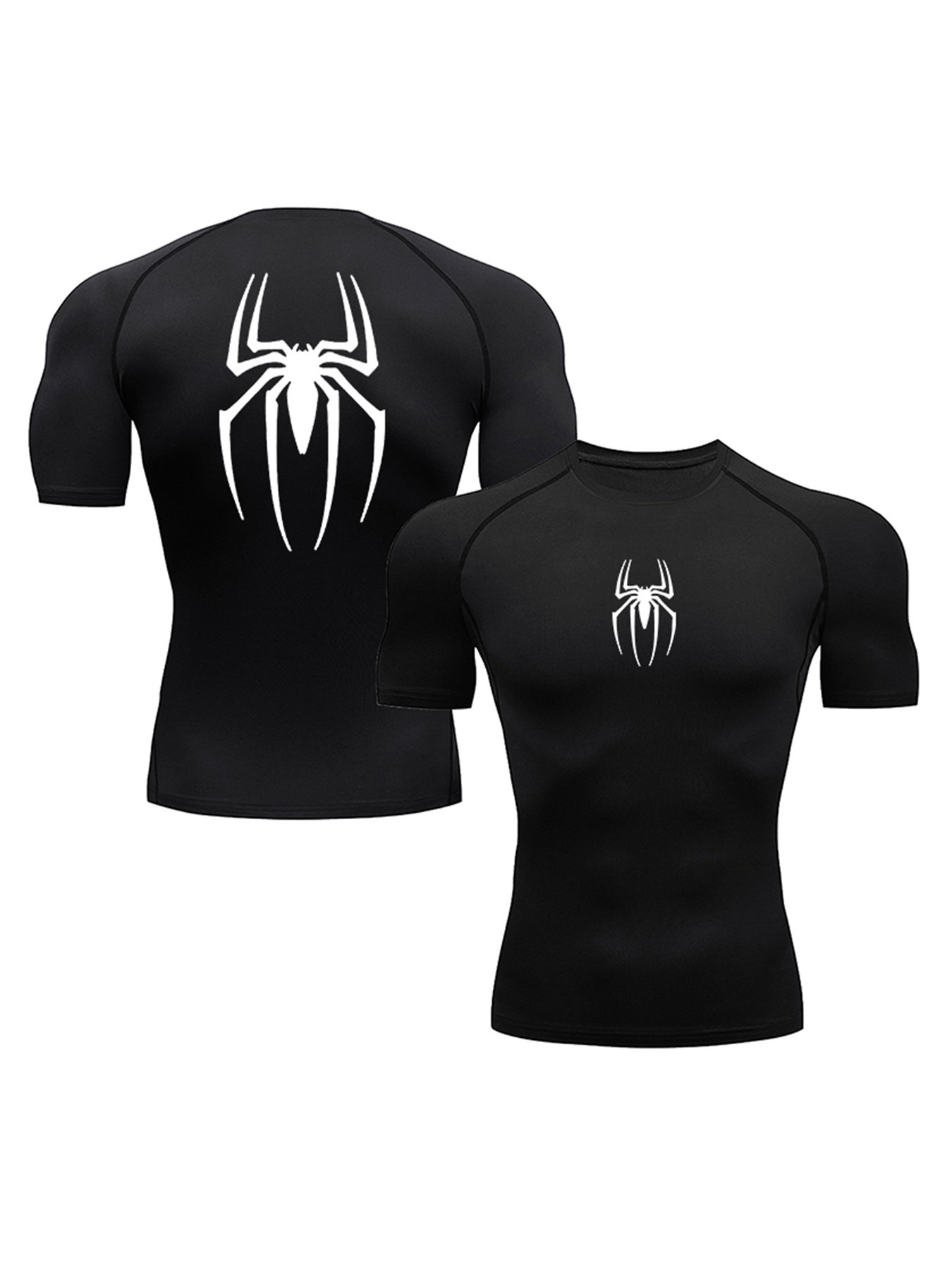남자의 새로운 스포츠 반팔 러닝 티셔츠 피트니스 반팔 타이트 탑 남자의 스파이더 맨 인쇄 그림