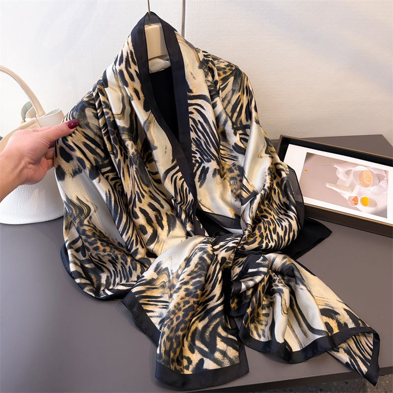 봄과 여름 얇은 야생 레오파드 무늬 시뮬레이션 실키 브로케이드 선 스크린 스카프 긴 스카프 목도리 다용도 스카프