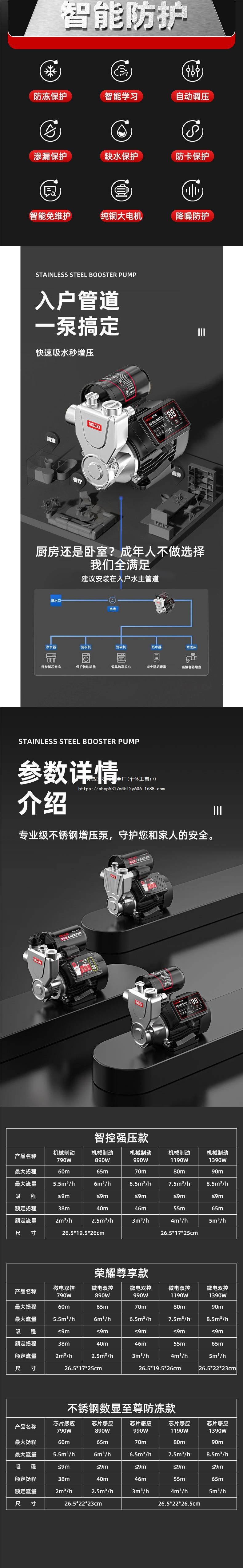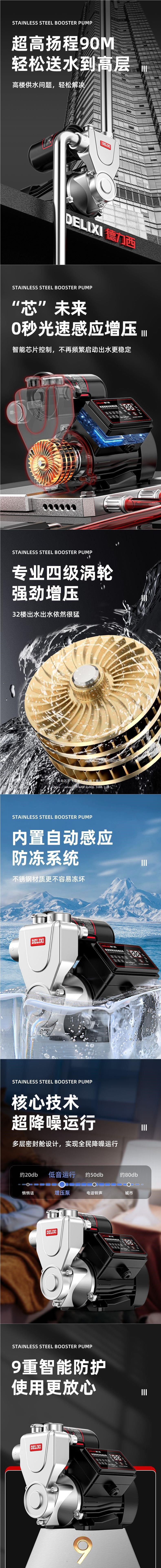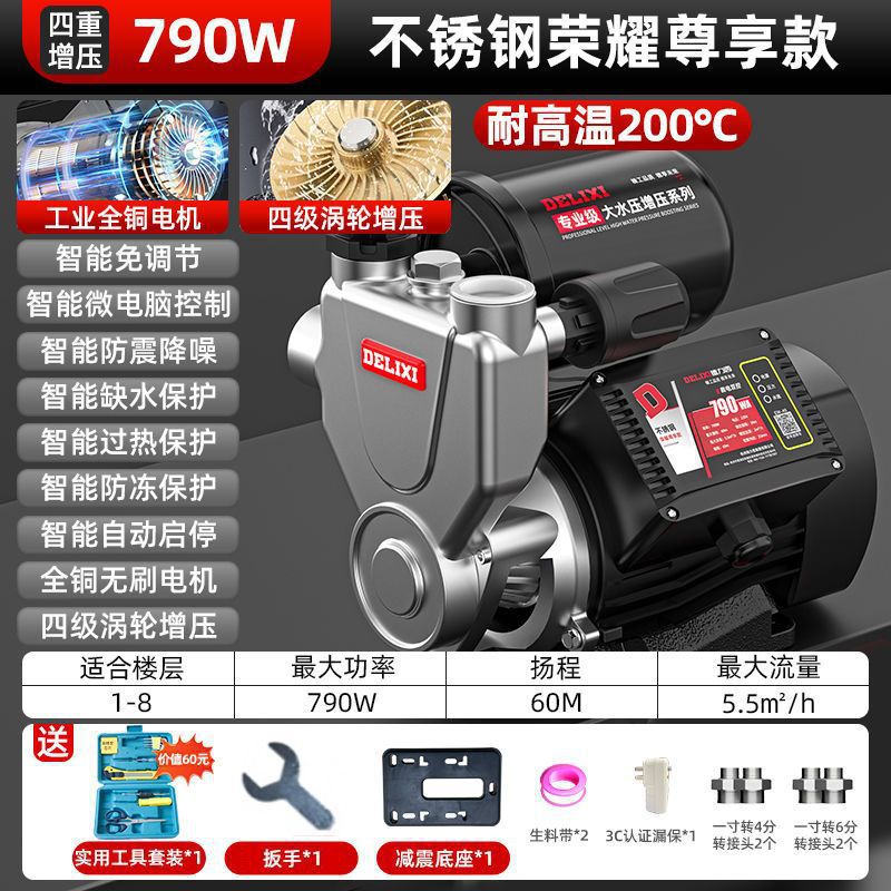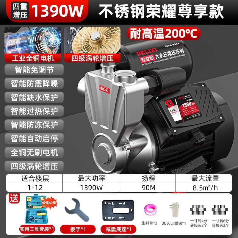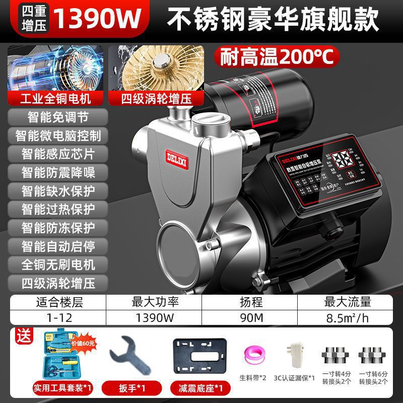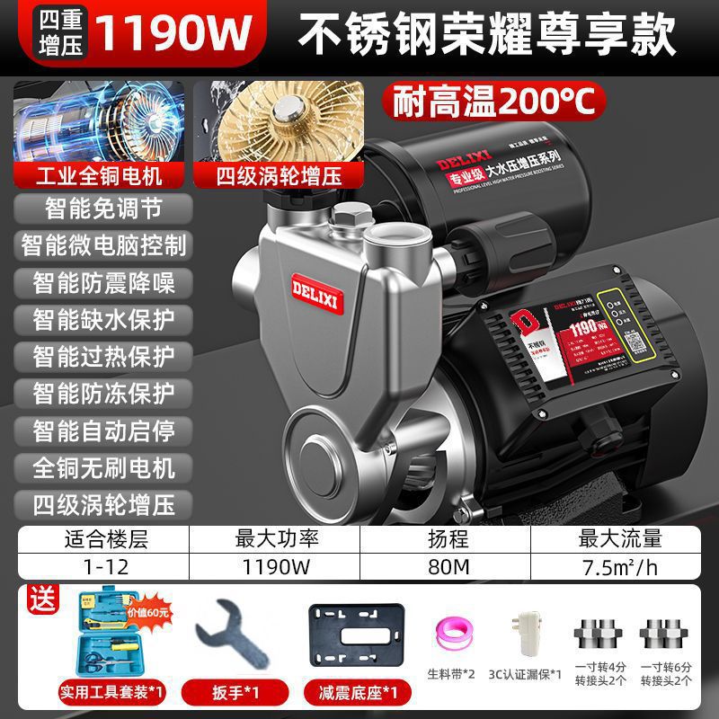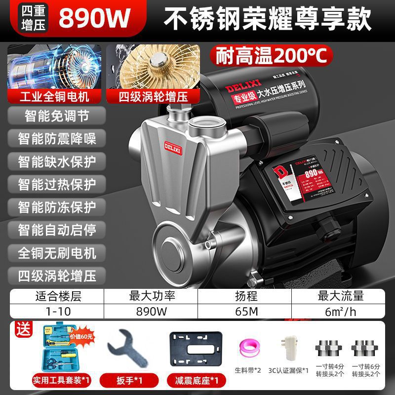 Delixi 스테인레스 스틸 부스터 펌프 가정용 자동 음소거 수돗물 전체 집 파이프 펌핑 가압 자체 프라이밍 펌프스토어 가기