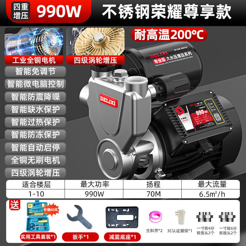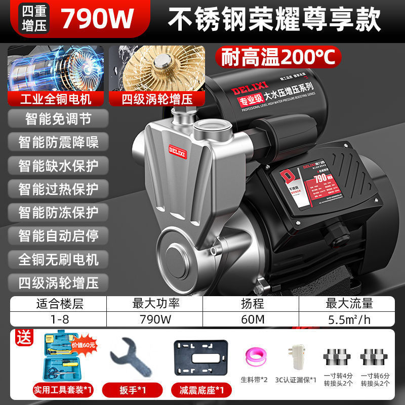 Delixi 스테인레스 스틸 부스터 펌프 가정용 자동 음소거 수돗물 전체 집 파이프 펌핑 가압 자체 프라이밍 펌프