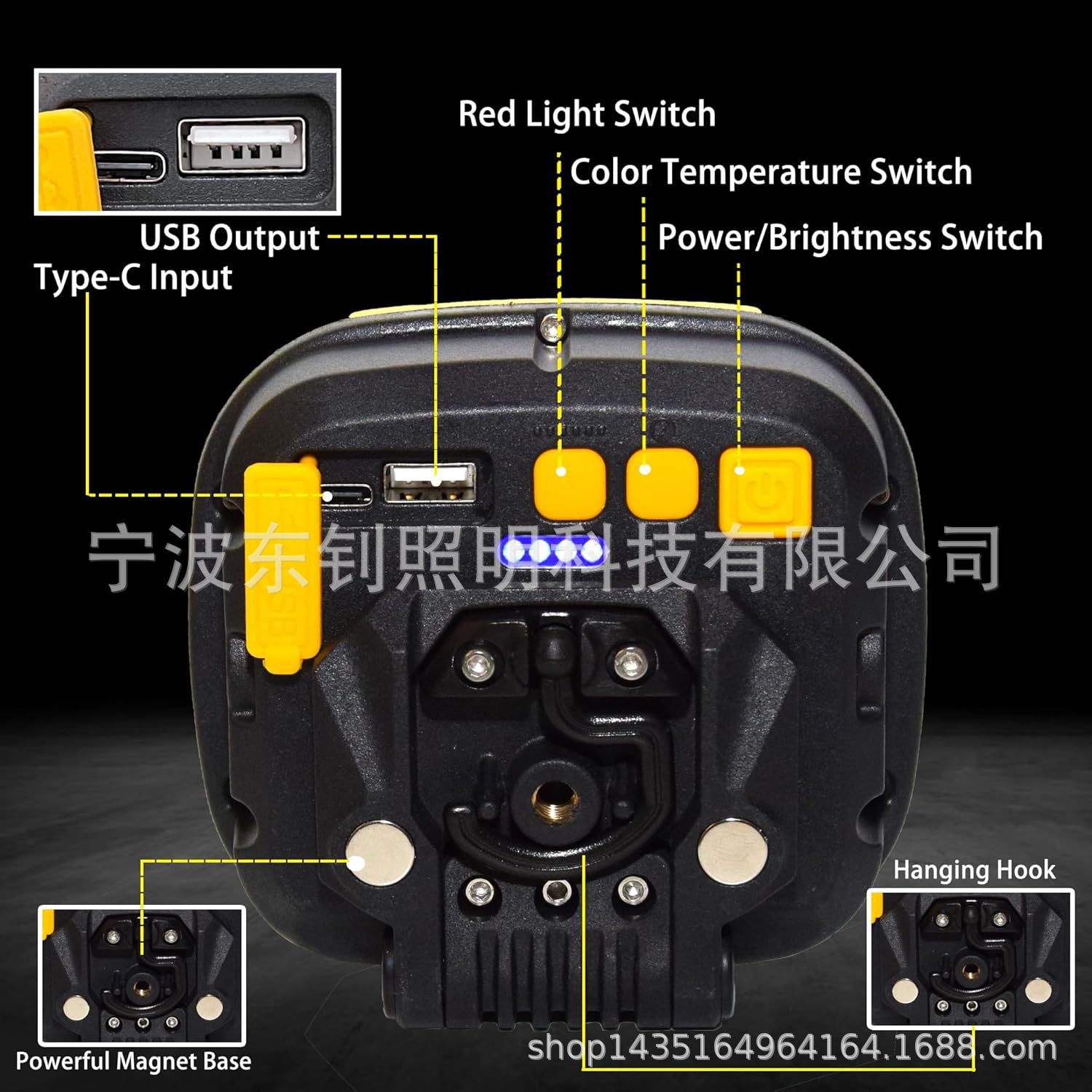 크로스 국경 새로운 자석 작업 빛 유형-C 충전식 야외 조명 COB 캠핑 라이트 휴대용 LED 텐트 라이트
