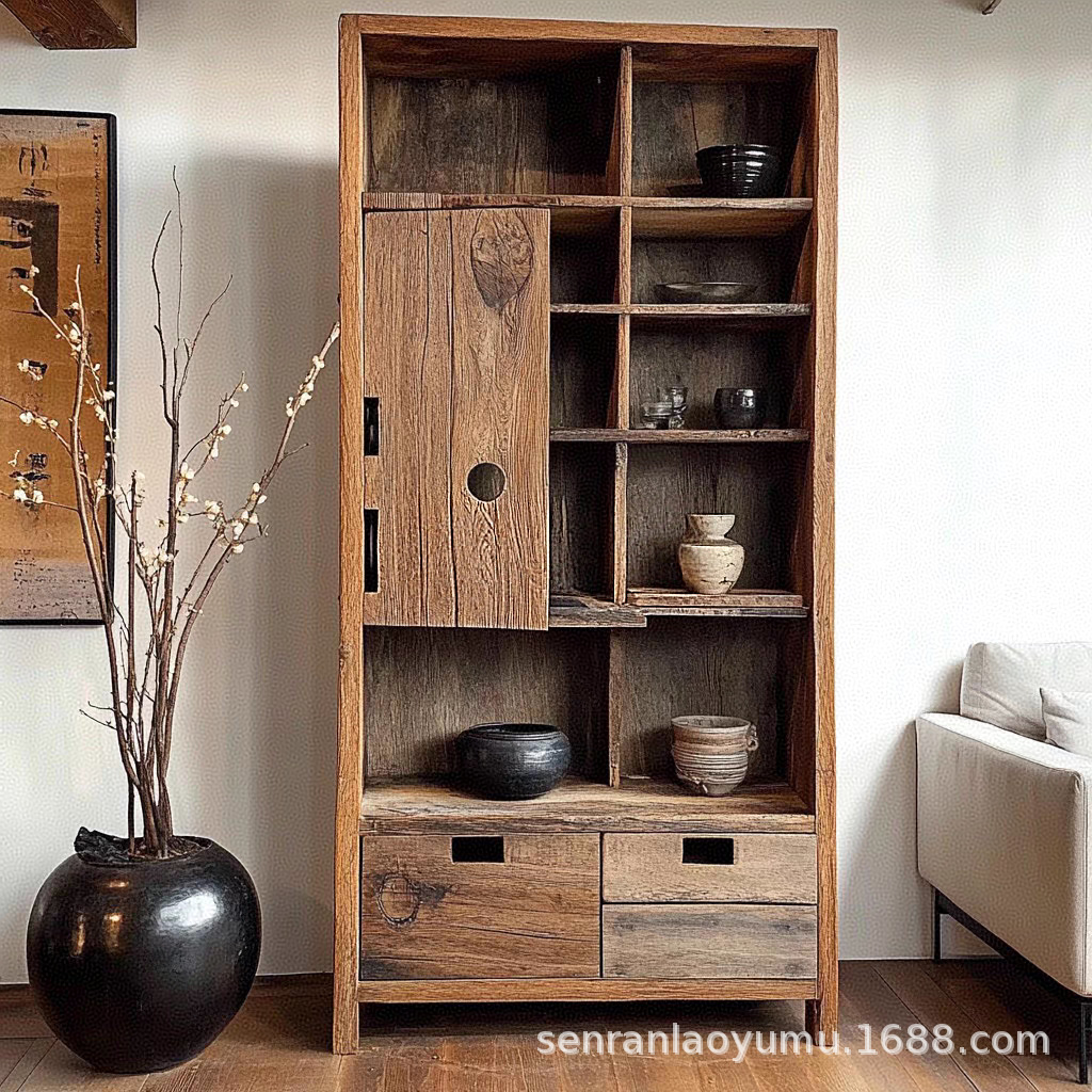 중국 컨트리 스테이 카페 사물함 솔리드 우드 책장 디스플레이 캐비닛 침묵 스타일 거실 사이드 캐비닛스토어 가기
