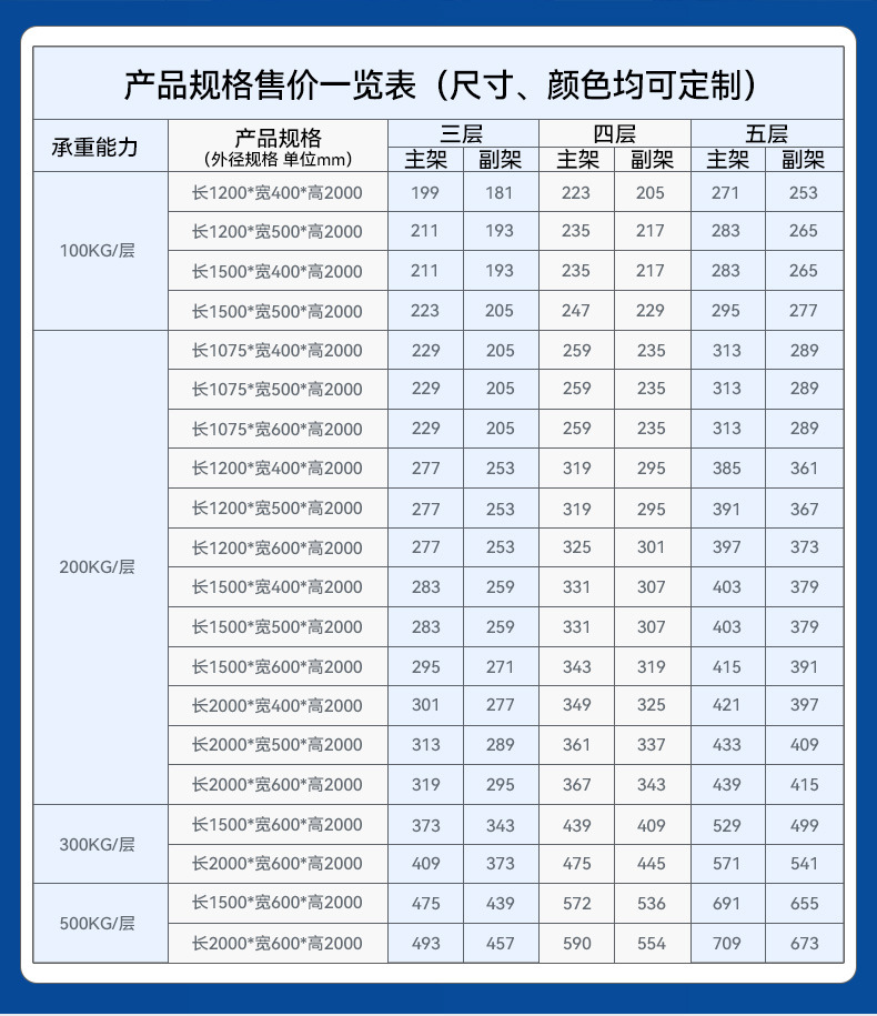 • aa 길이 2000*폭 400*높이 2000*5겹*200KG*청색*정전분 분사*메인 프레임