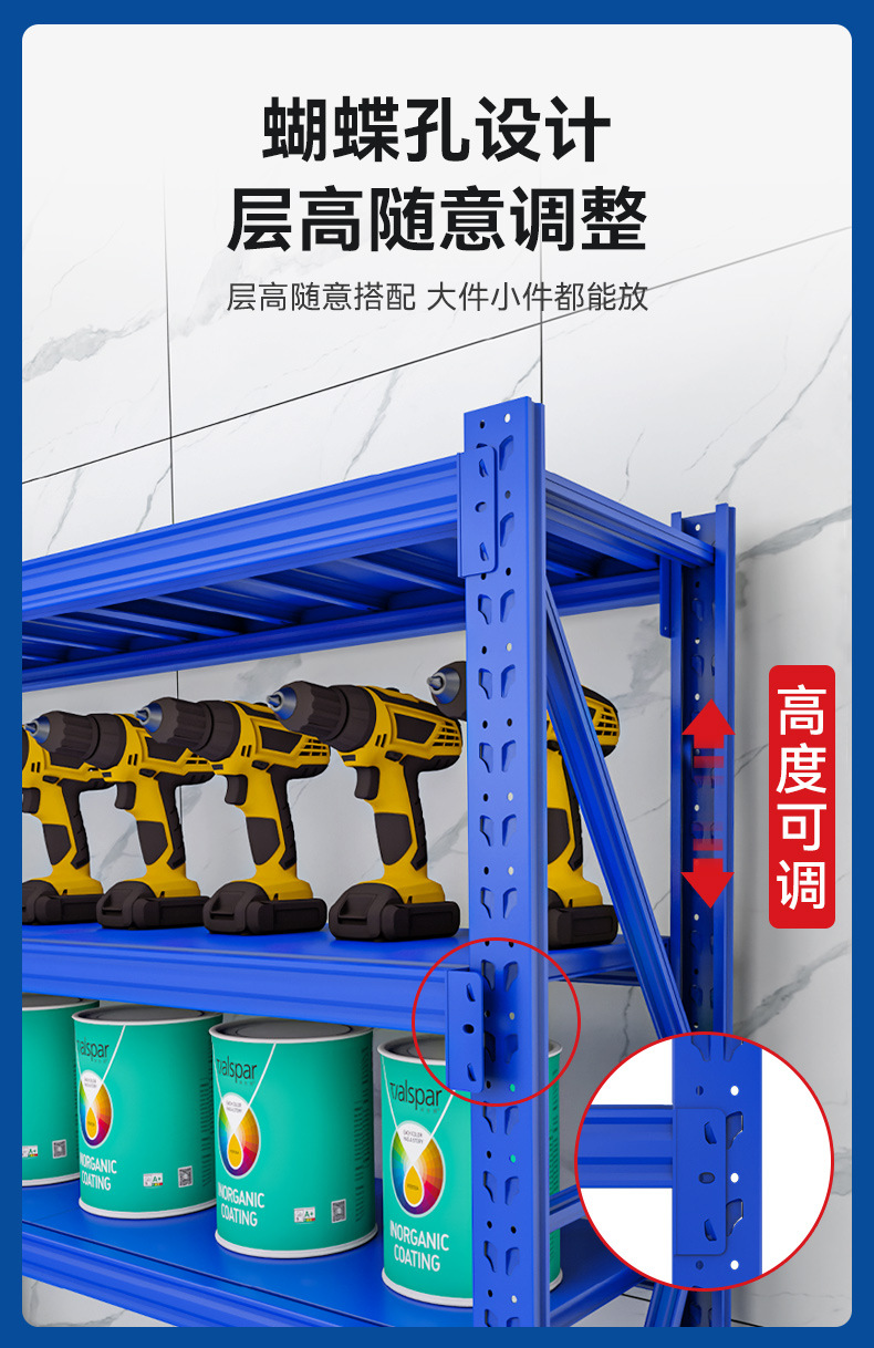 • aa 길이 1075*폭 500*높이 2000*3개 층*200KG*파란색*정전기 분말 분사*메인 프레임