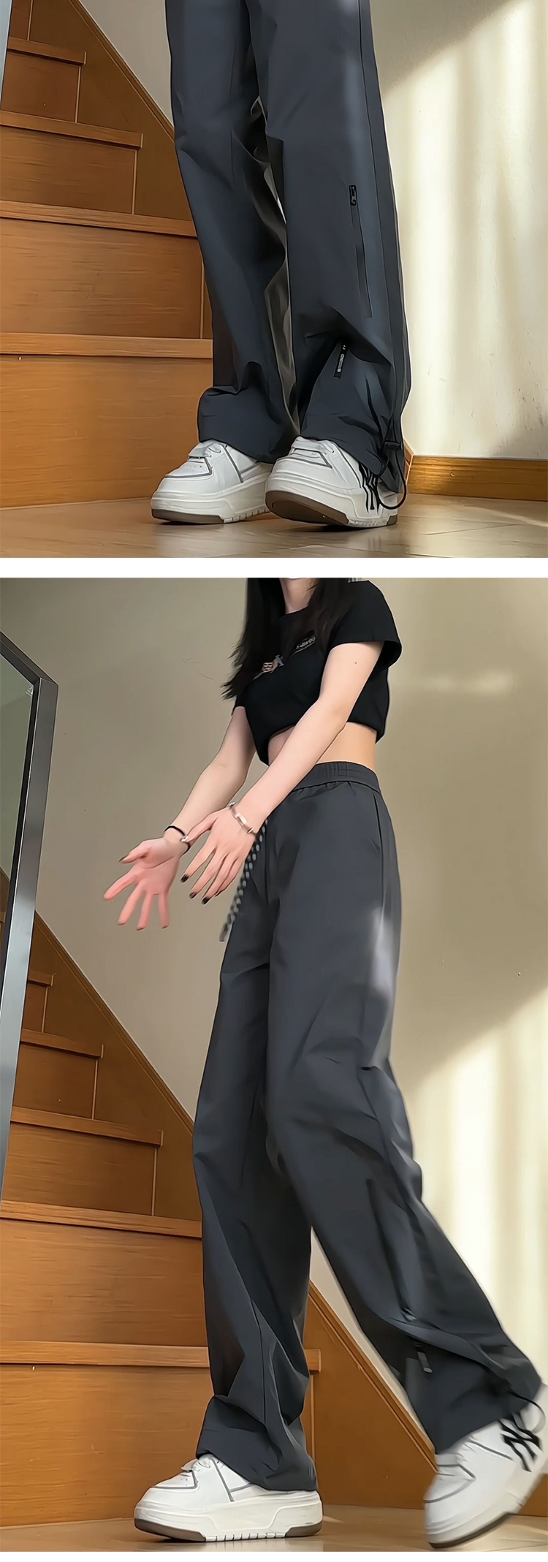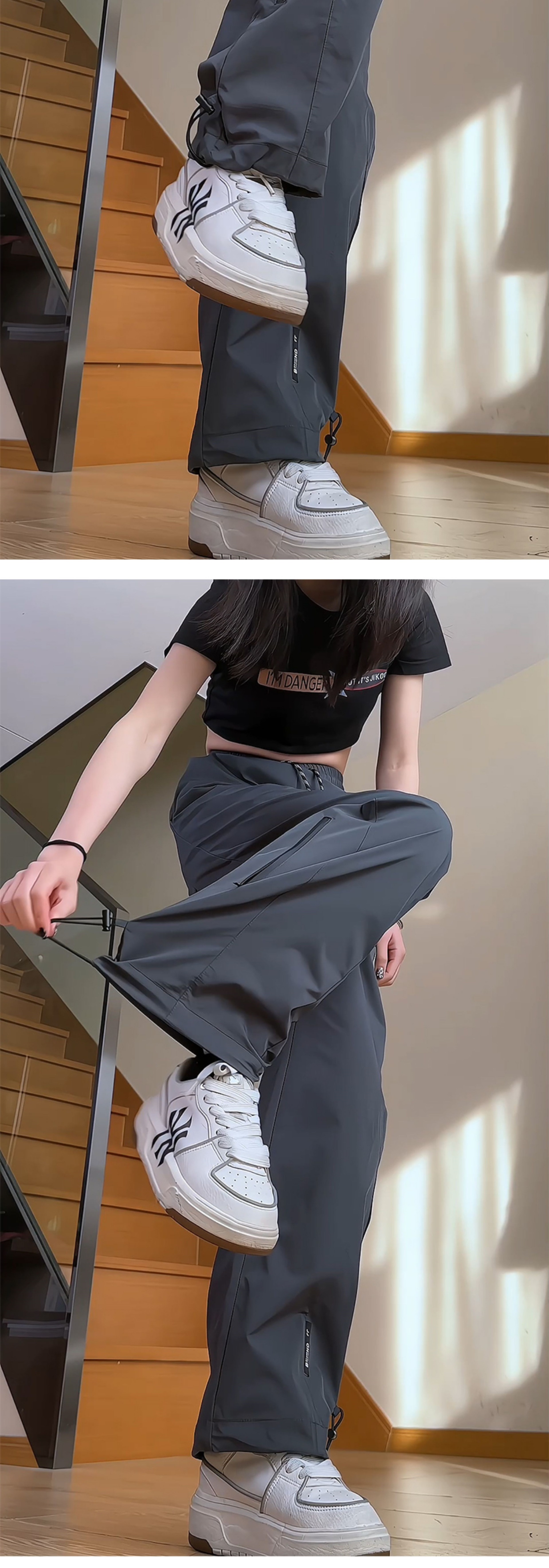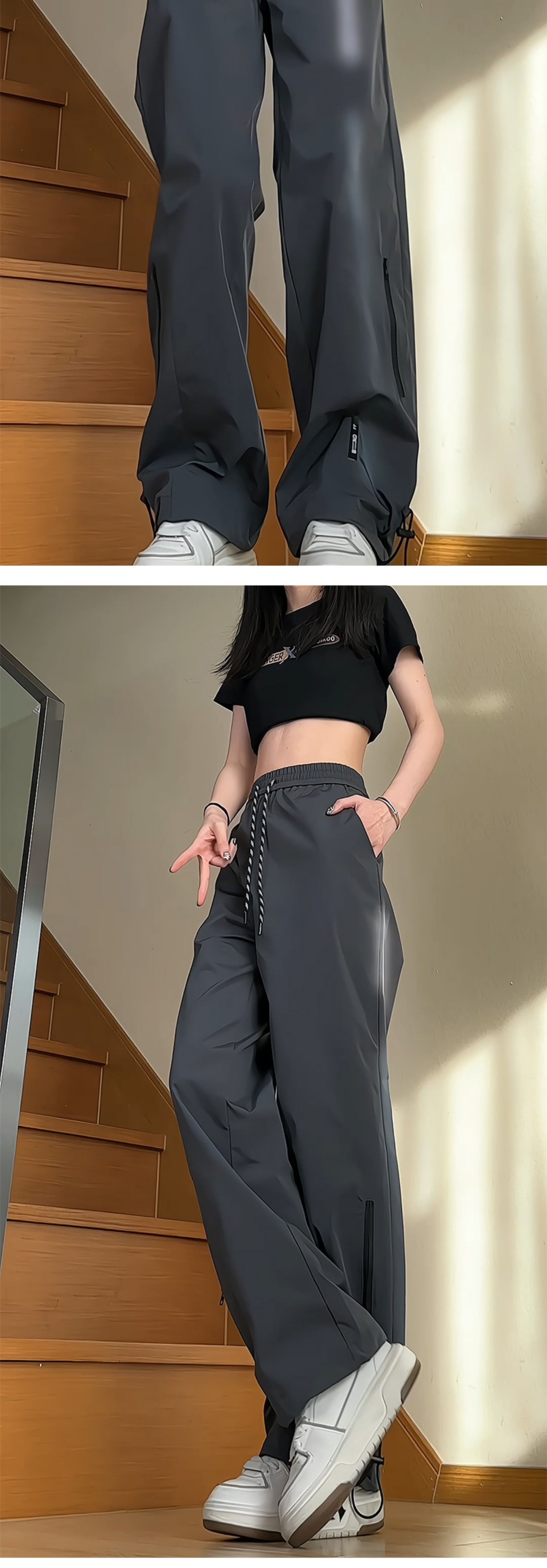 Senma의 봄과 여름 야외 등산 바지 여성용 스트레이트 좁은 버전 넓은 다리 캐주얼 바지 얇은스토어 가기