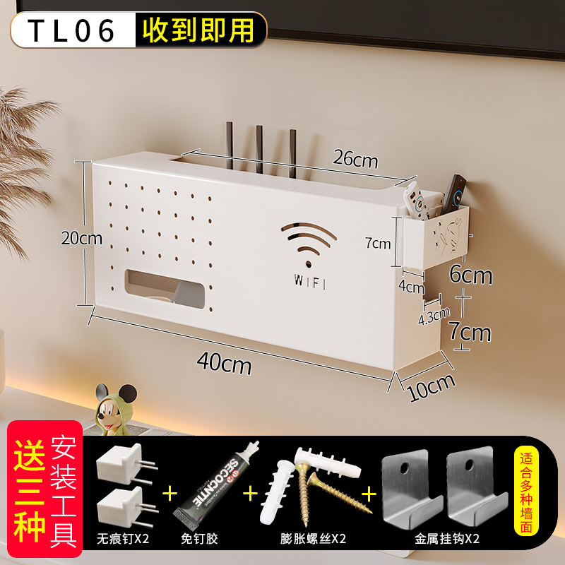 거실 TV 탑 스토리지 박스 벽 교수형 얇은 라우터 스토리지 랙 플러그인 네트워크 내장 벽 교수형 랙스토어 가기