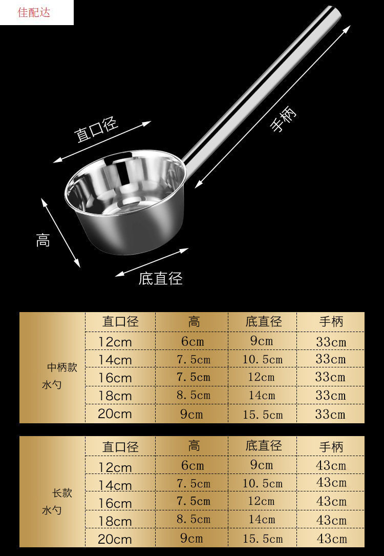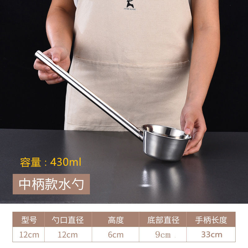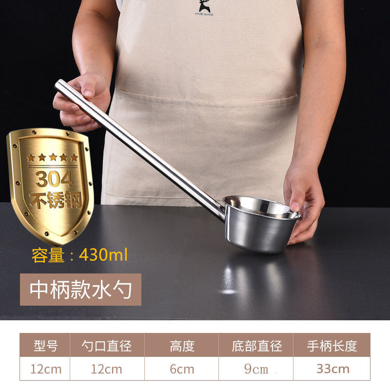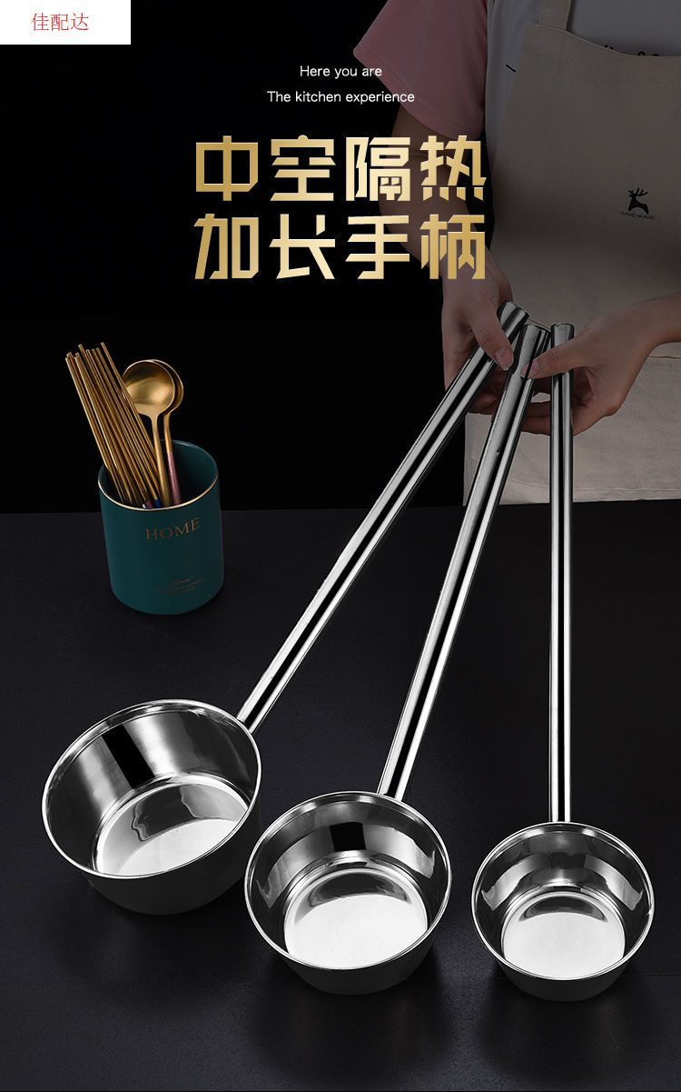 긴 손잡이를 두껍게 한 숟가락 물 국자 주방 매점 죽 수프 국자 물 국자 304 스테인레스 스틸 국자스토어 가기