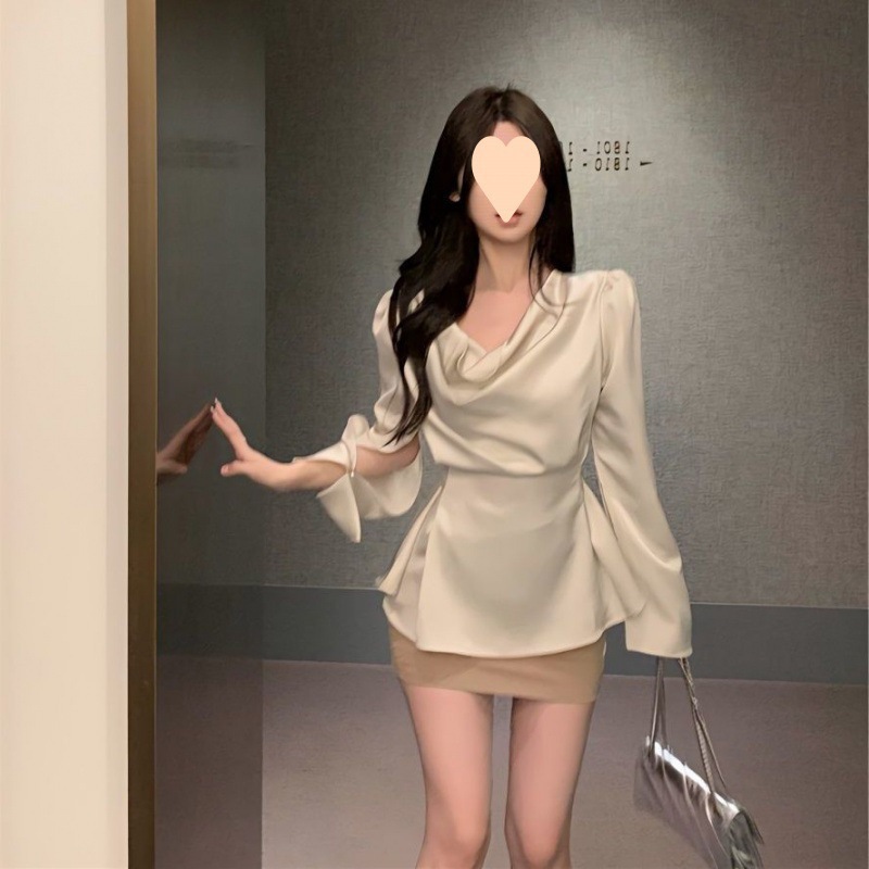 순수한 욕망 하이 엔드 우아한 새틴 셔츠 여성의 봄 허리 슬리밍 올 매치 니치 틱 탑스토어 가기
