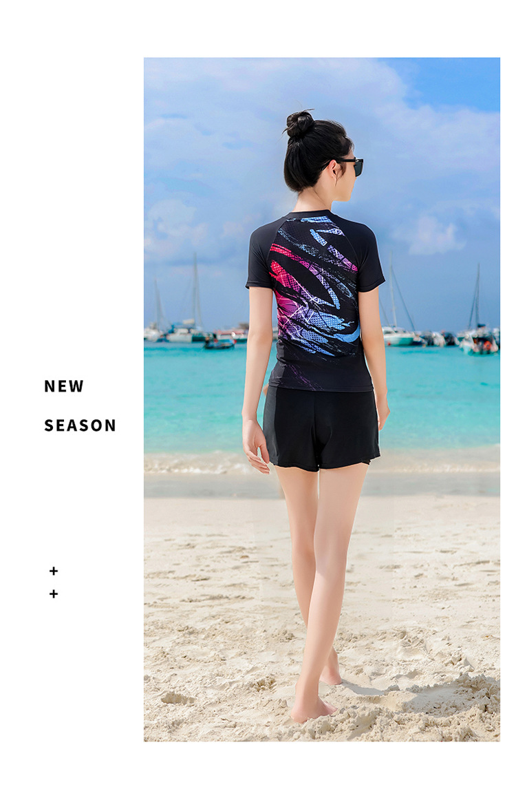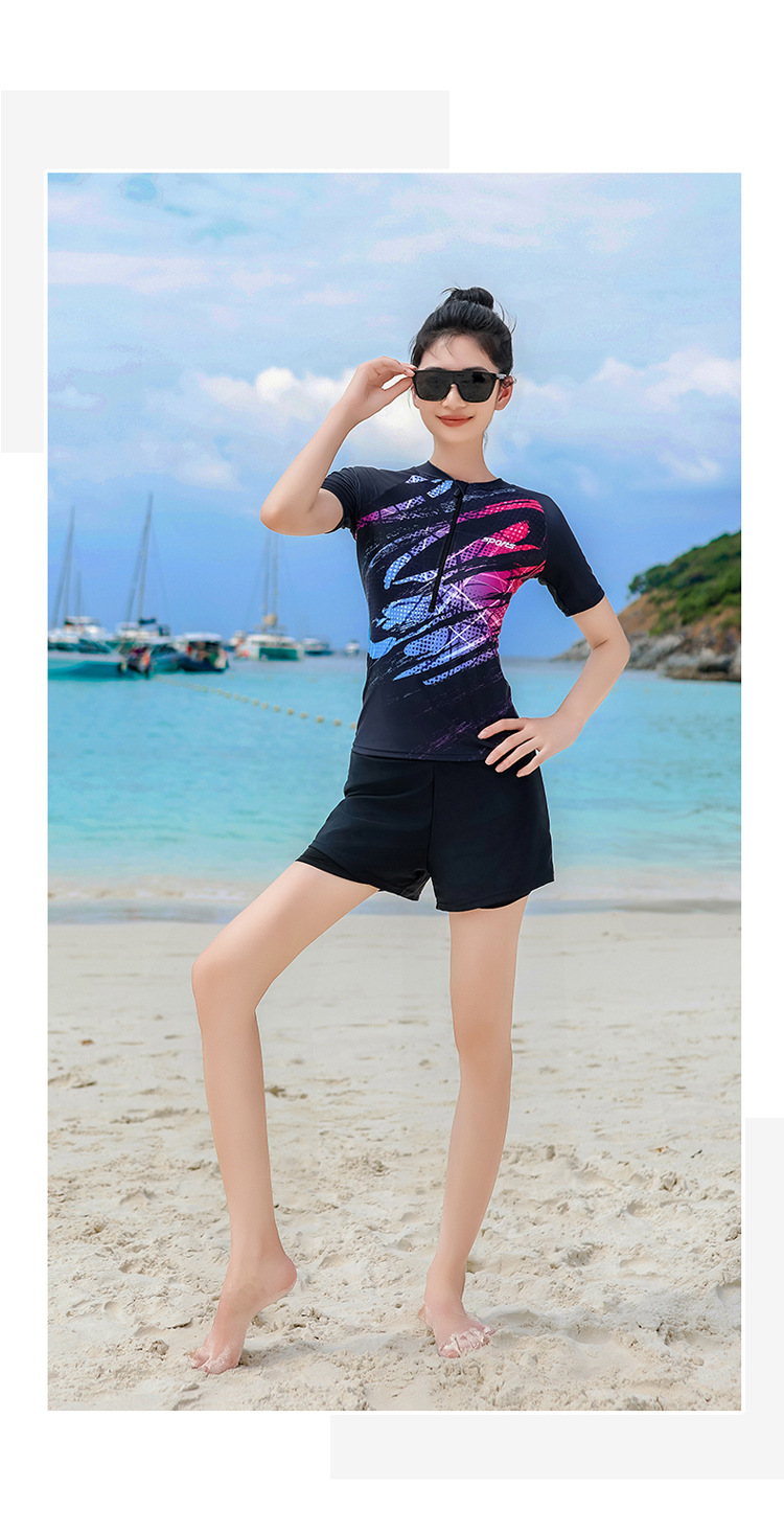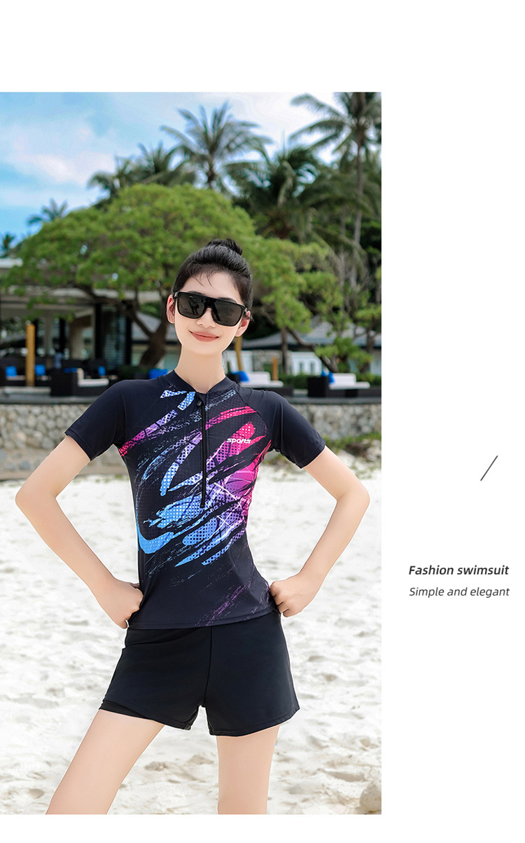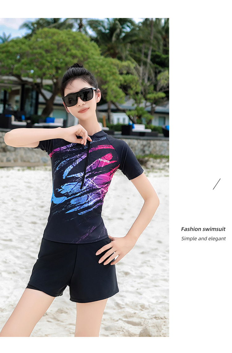 2025 새로운 여성 수영복 대형 스포츠 인쇄 스티치 수영복 스플릿 복서 슬림 지방 mm 온천 수영복스토어 가기