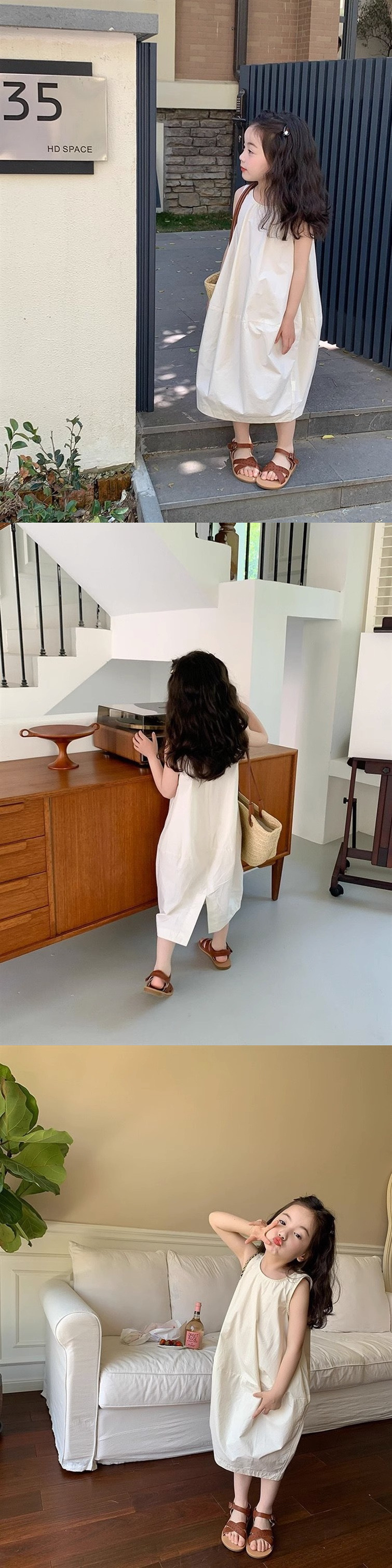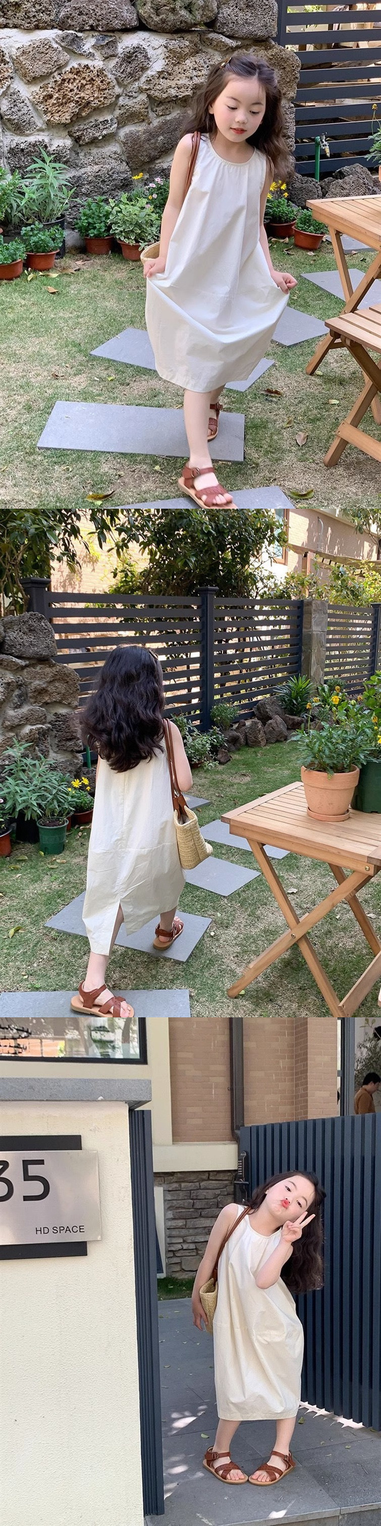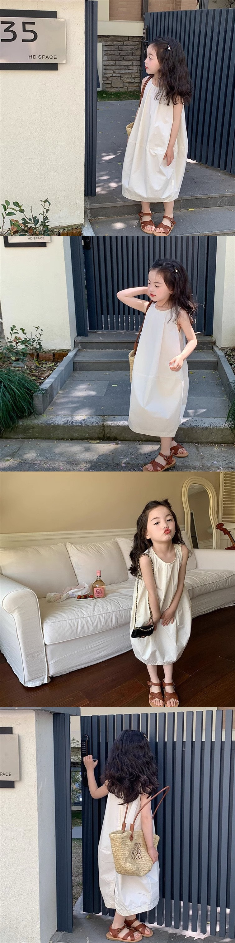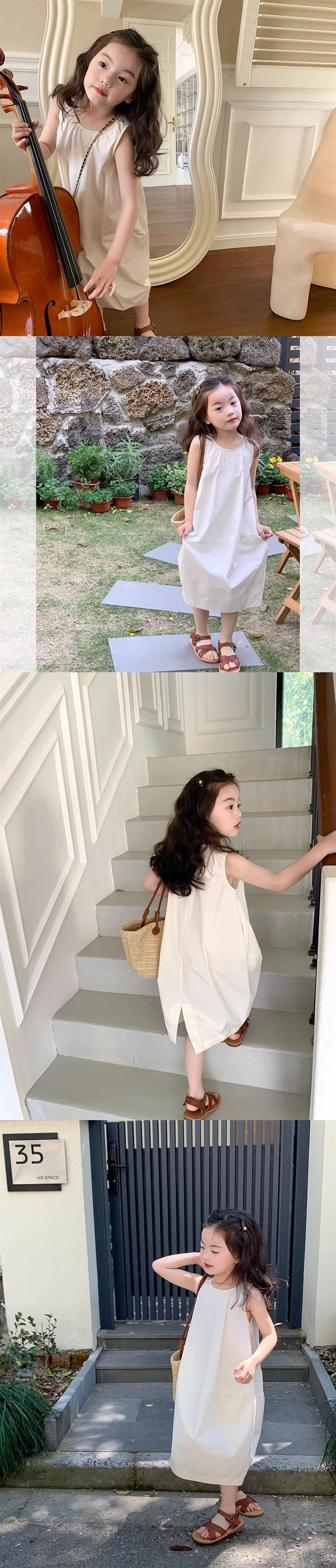 한국 스타일 소녀 슈퍼 불멸의 원피스 어린이 여름 맞춤형 치마 분할 디자인 우아한 민소매 패션 스커트스토어 가기