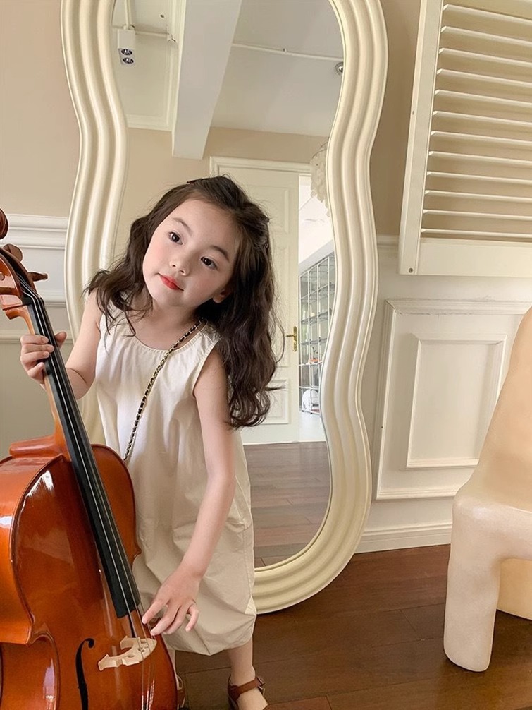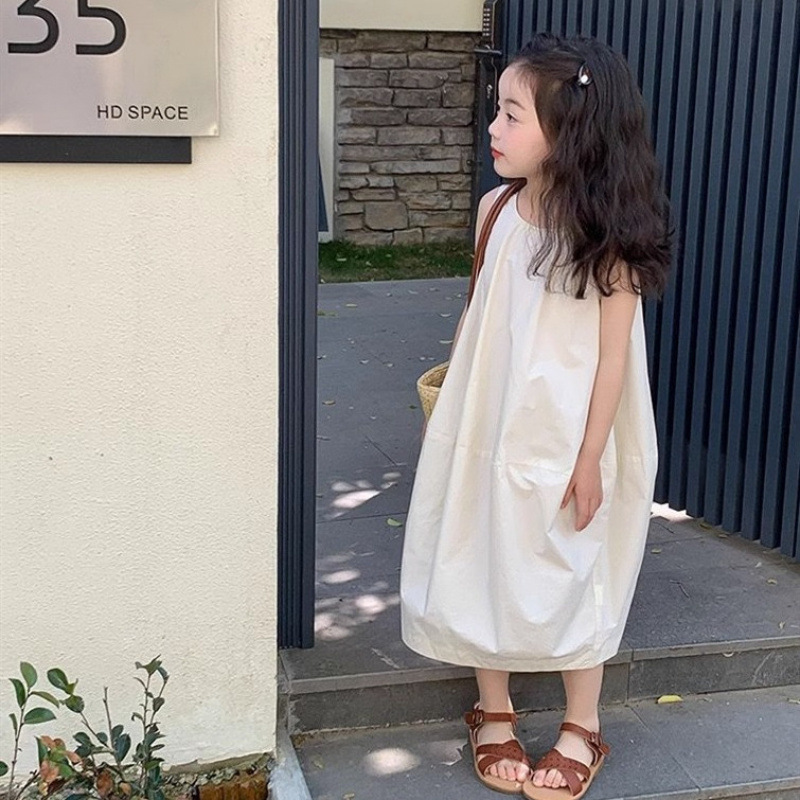 한국 스타일 소녀 슈퍼 불멸의 원피스 어린이 여름 맞춤형 치마 분할 디자인 우아한 민소매 패션 스커트