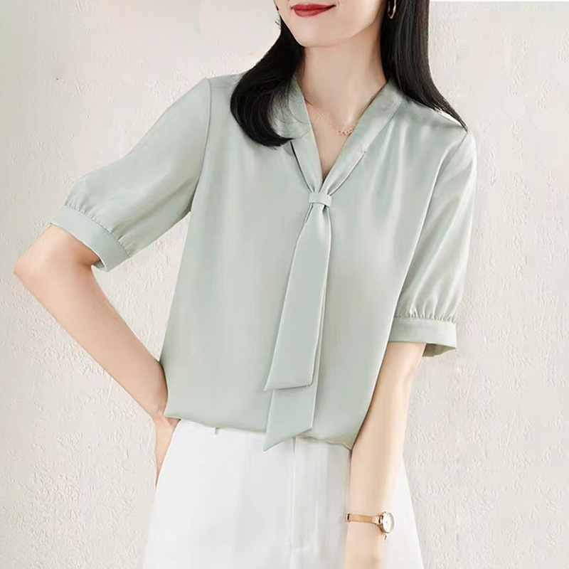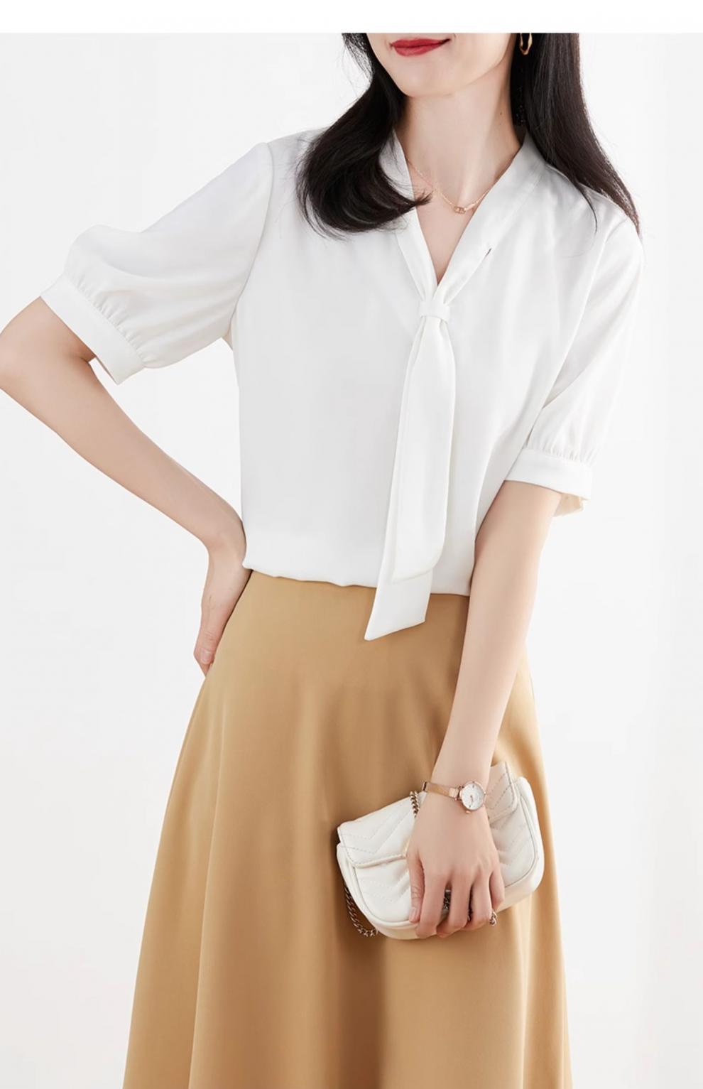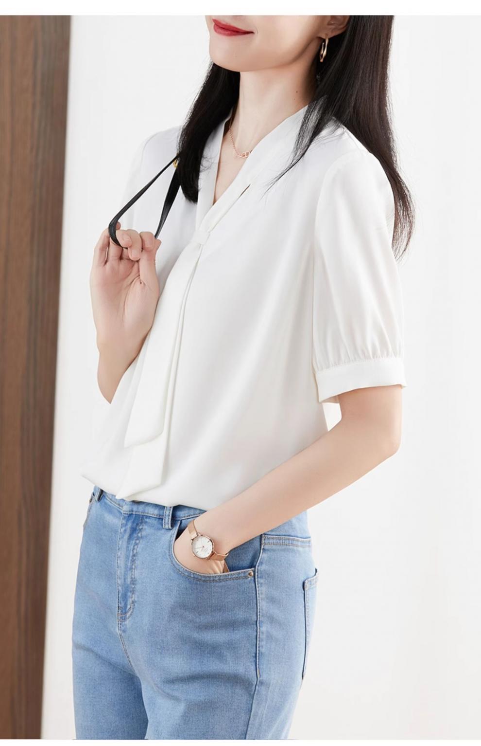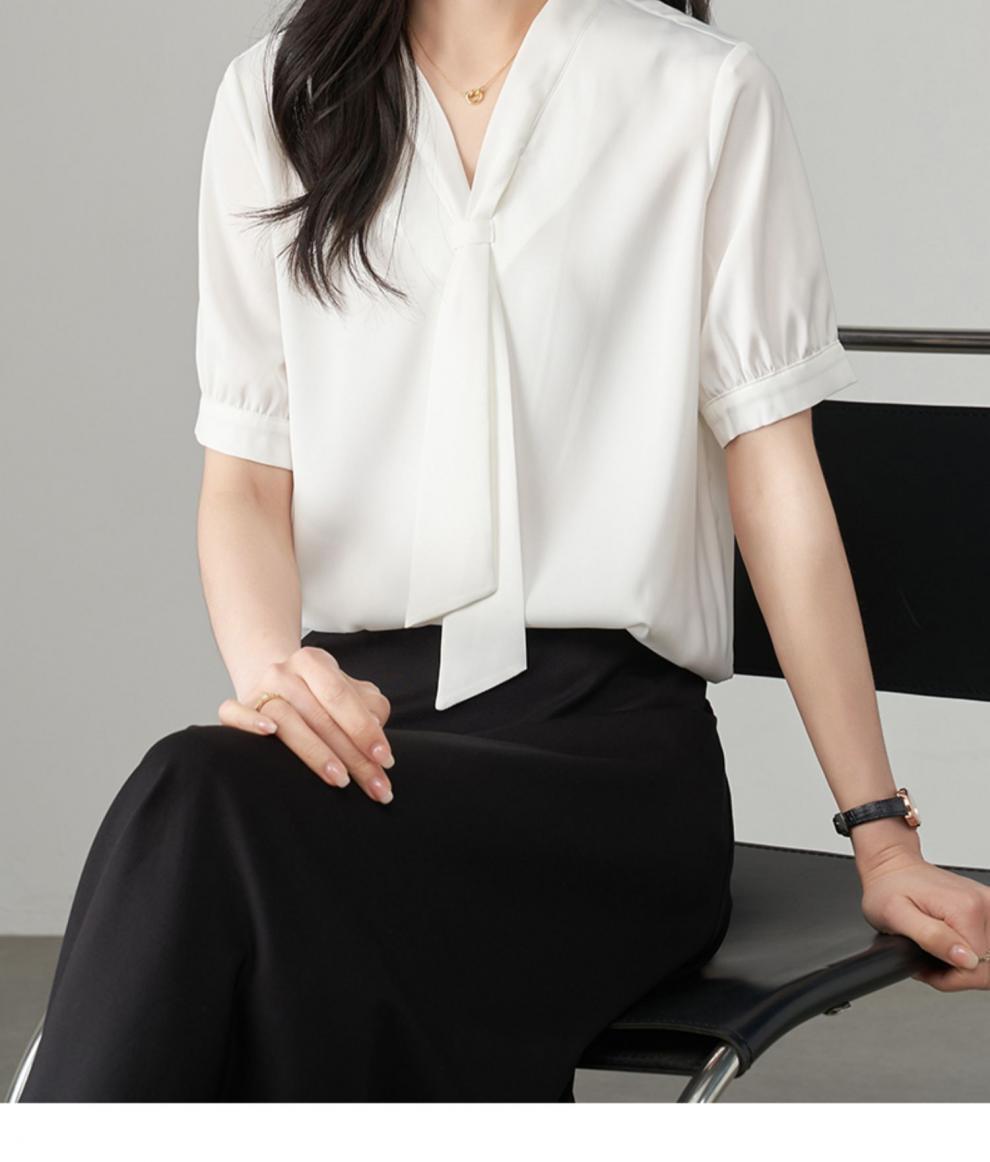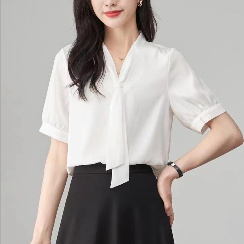 그물 그림 우아한 스트랩 짧은 소매 셔츠 여성의 여름 쉬폰 탑 2024 새로운 하이 엔드 화이트 셔츠스토어 가기