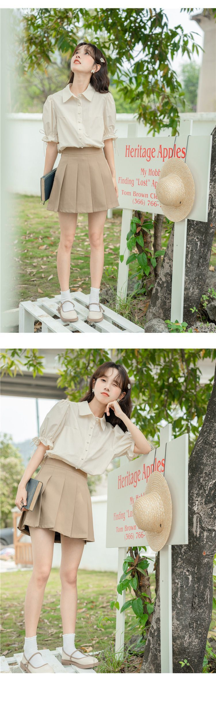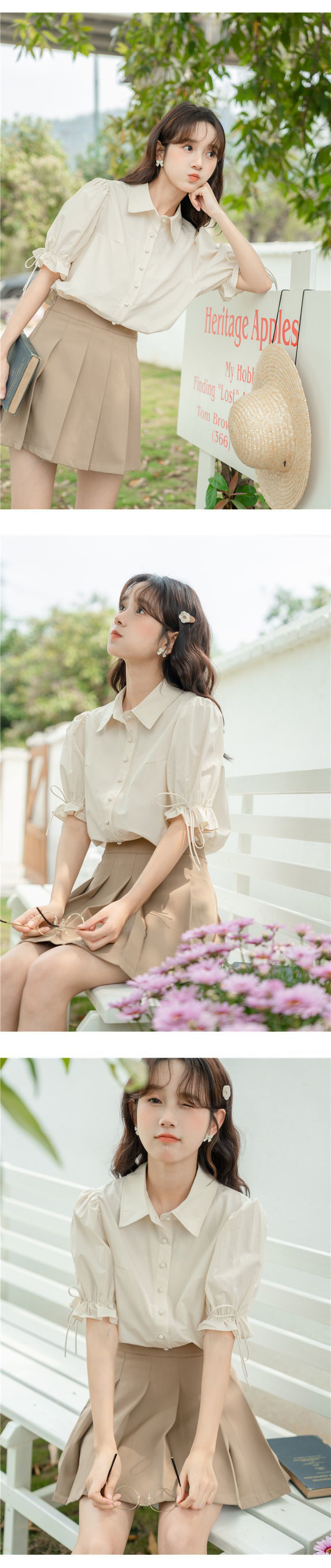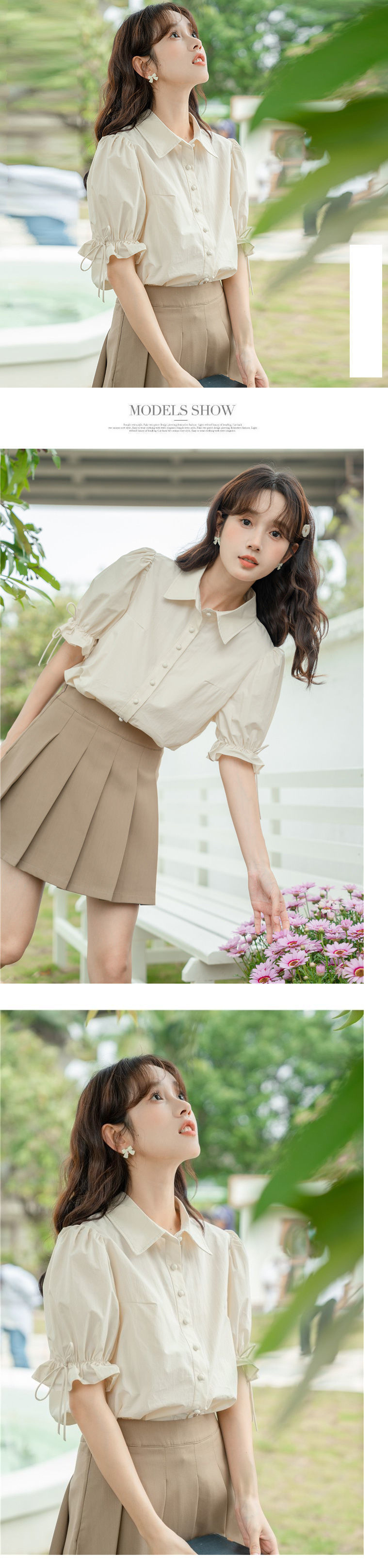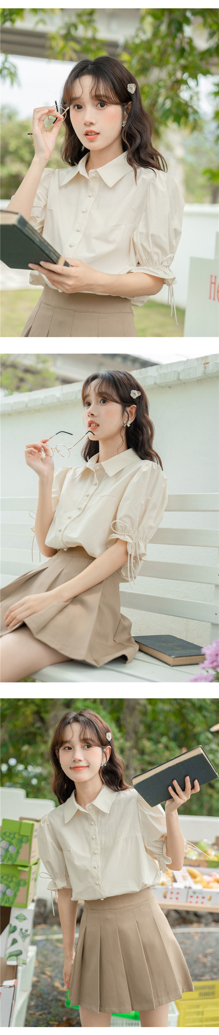 디자인 센스 퍼프 소매 반팔 셔츠 여자의 2025 여름 일본 새로운 달콤한 탑 올 매치 루즈 셔츠스토어 가기