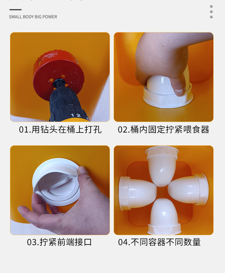 • *새 피더 4개 + 12L 정사각형 배럴(구멍 4개 뚫림)