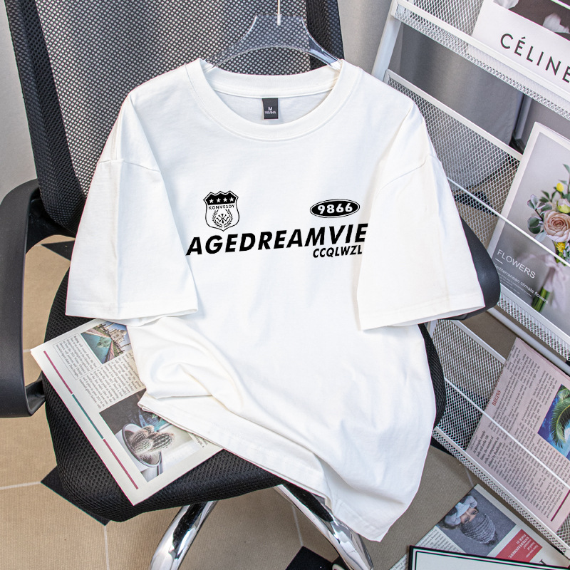 순면 짧은 소매 라운드 넥 풀오버 탑 패션 서양 스타일 캐주얼 느슨한 한국 스타일 핸섬 폭발 소년 소녀를위한 트렌디 티셔츠스토어 가기