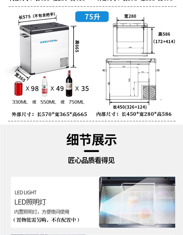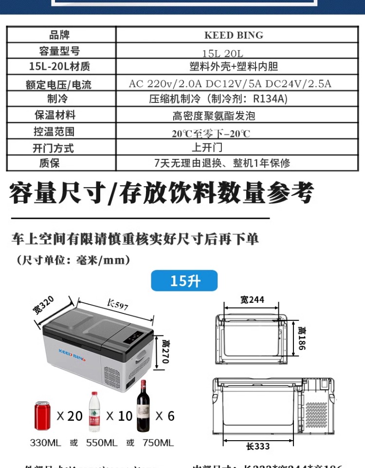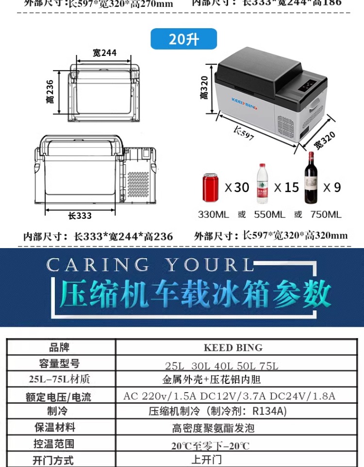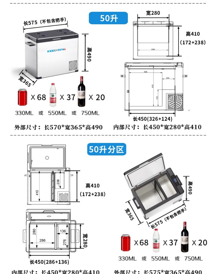 • 50리터 알루미늄 라이너[12V/24V/220V 범용](전원 어댑터 포함)