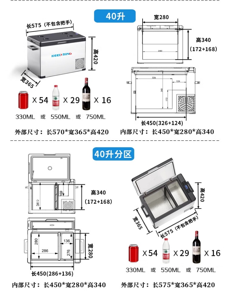 • 40리터 알루미늄 내부 탱크[12V/24V/220V 범용](전원 어댑터 포함)