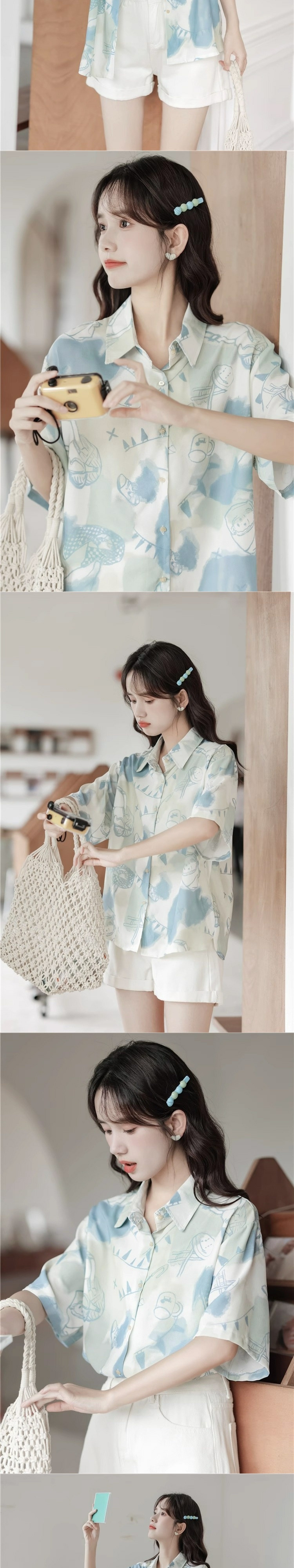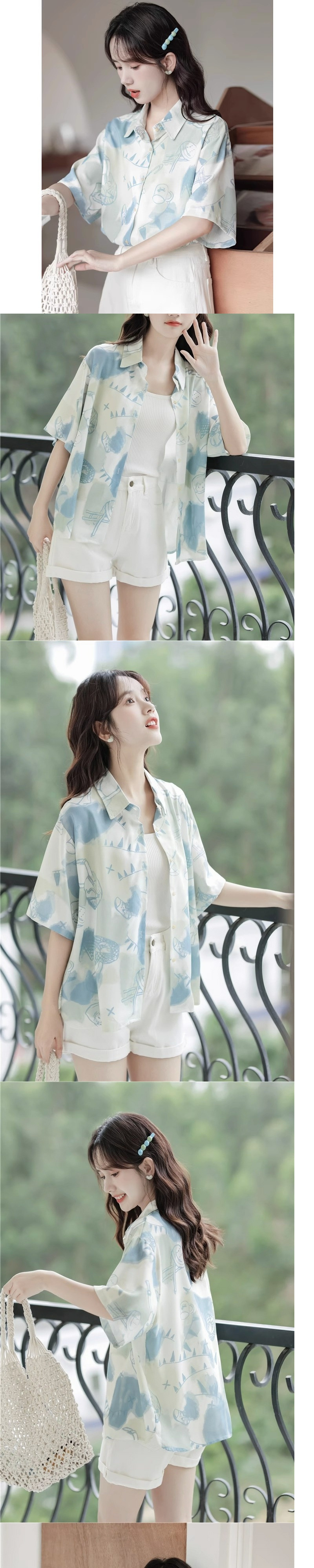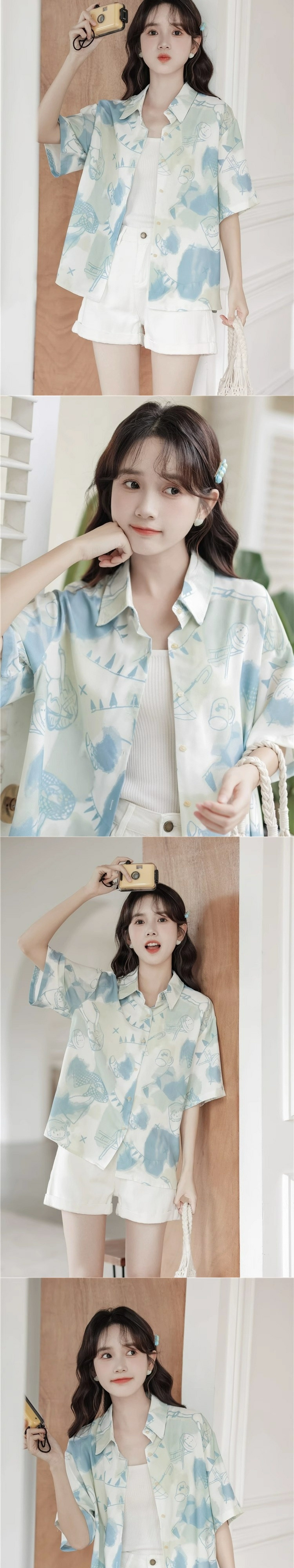 2025 새로운 디자인 센스 작은 사람들이 반팔 셔츠 여성의 여름 틈새 대학 스타일 슬리밍 루즈 탑 인쇄스토어 가기