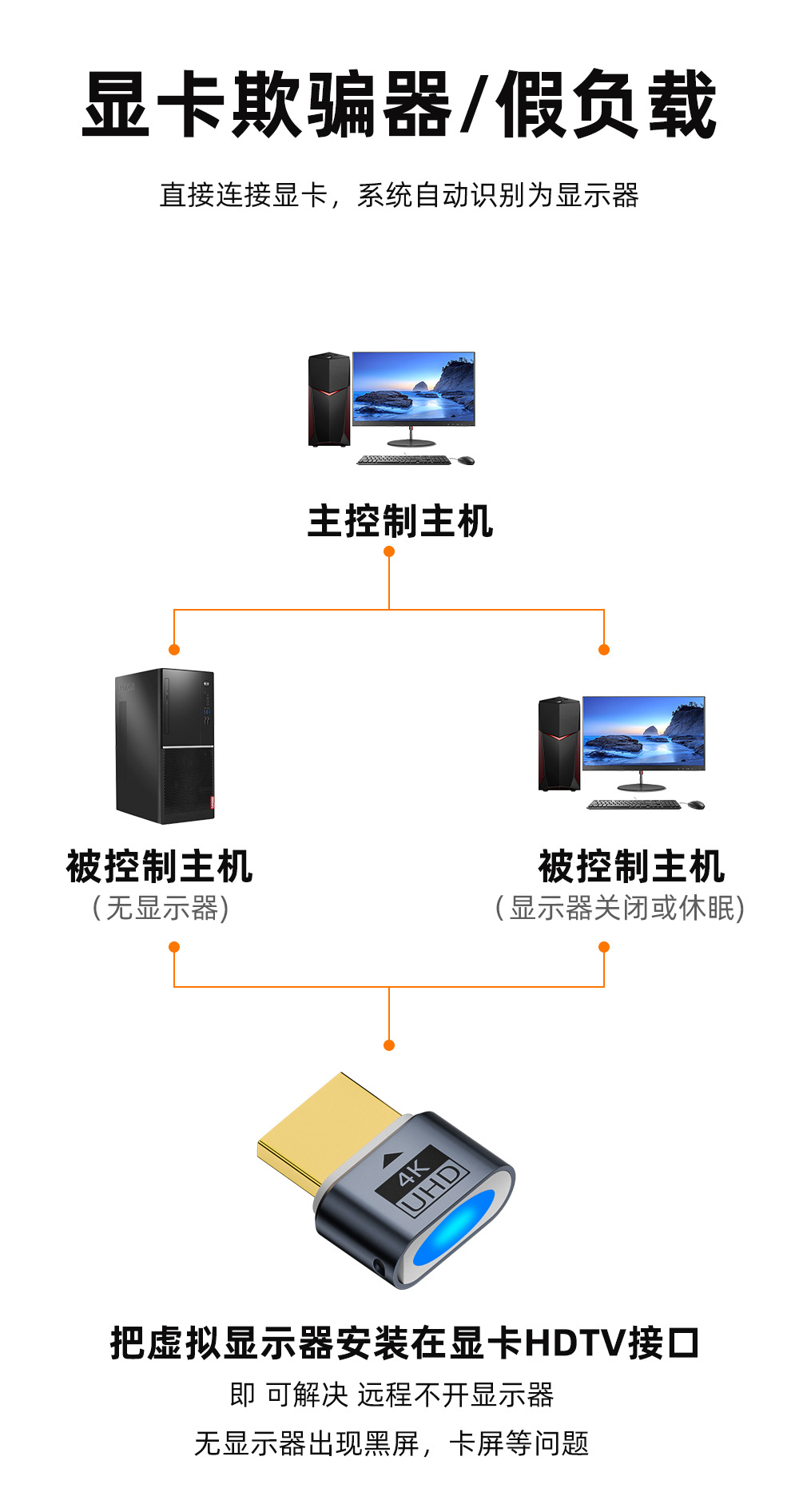 HDTV 그래픽 카드 스푸핑 스크린 가상 컴퓨터 모니터 게임 끊기 가짜 시뮬레이션 원격 잠금 화면 보물 트릭
