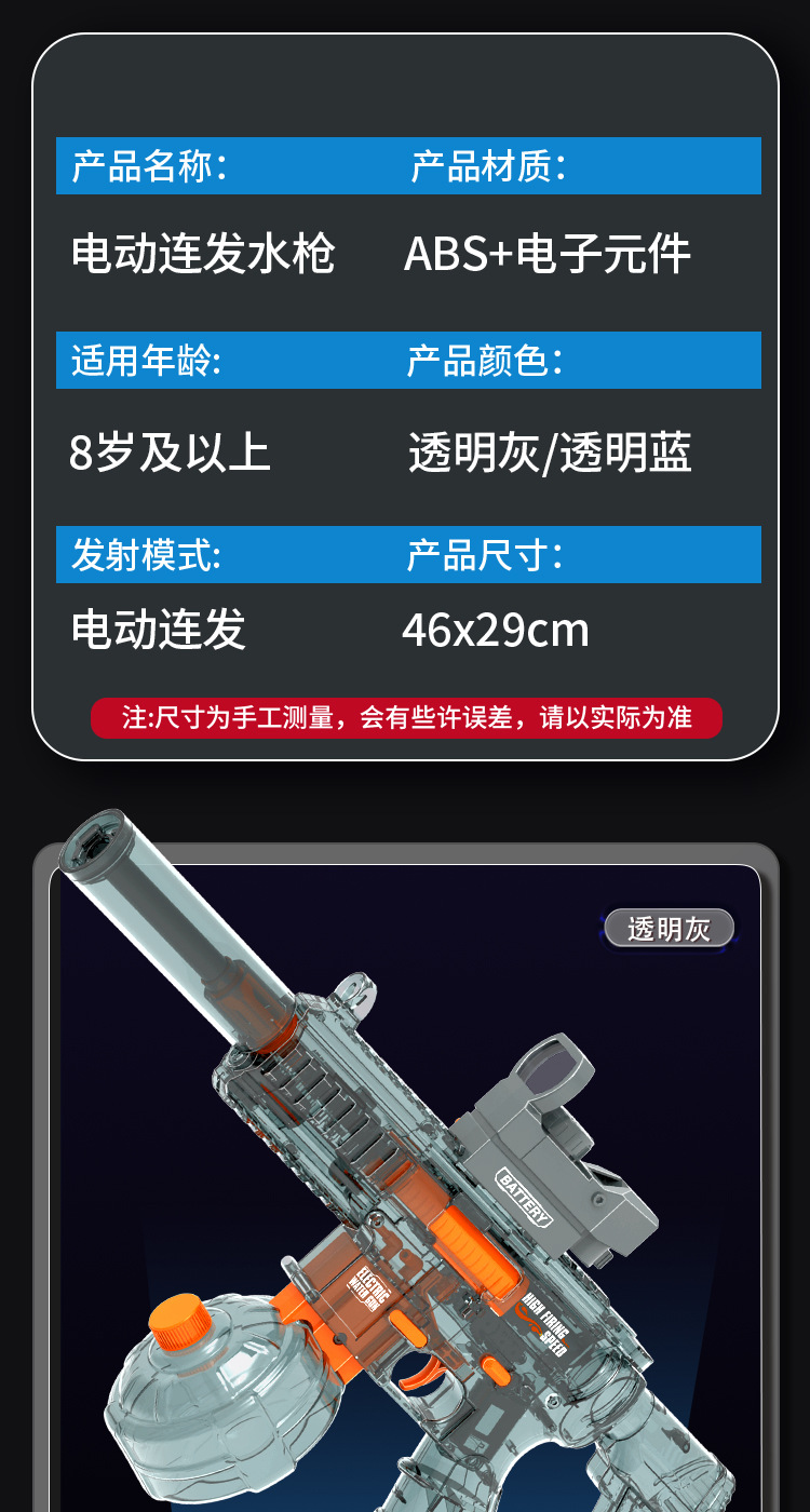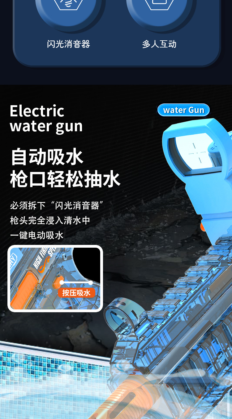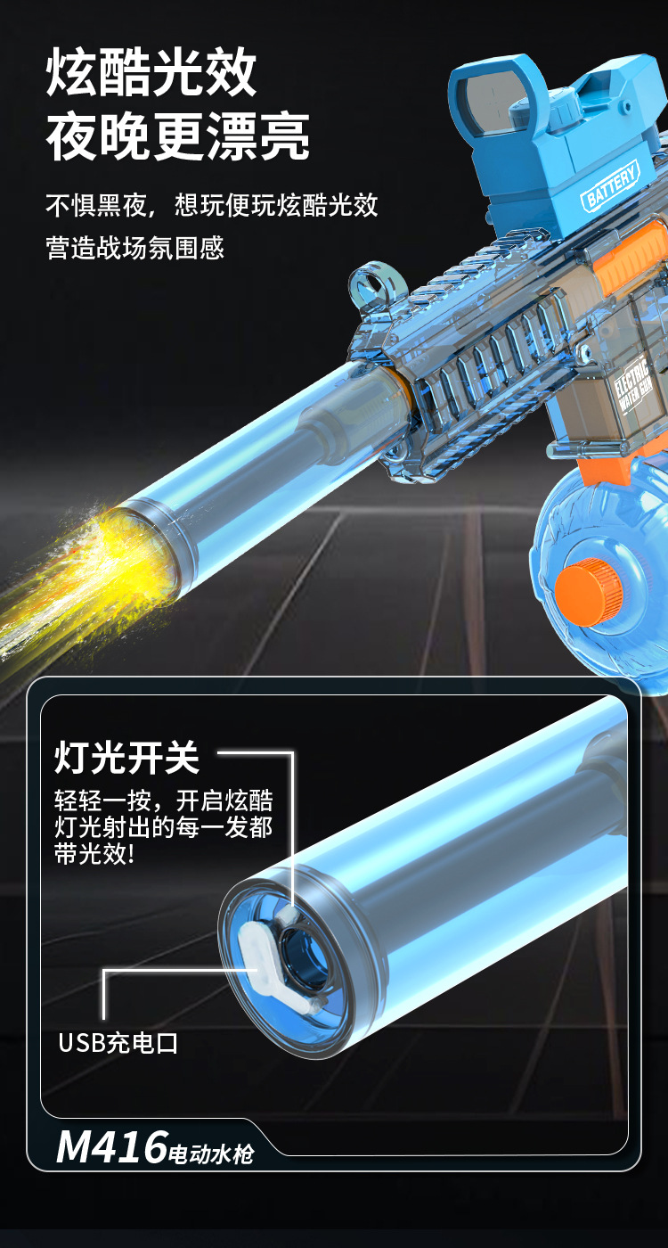 국경 간 UMP45 물총 어린이 전기 자동 물 흡수 잡아 대용량 불꽃 특수 효과 전기 물총스토어 가기