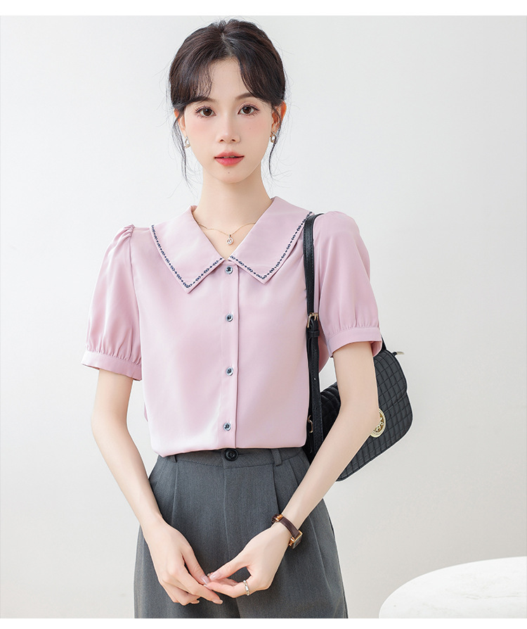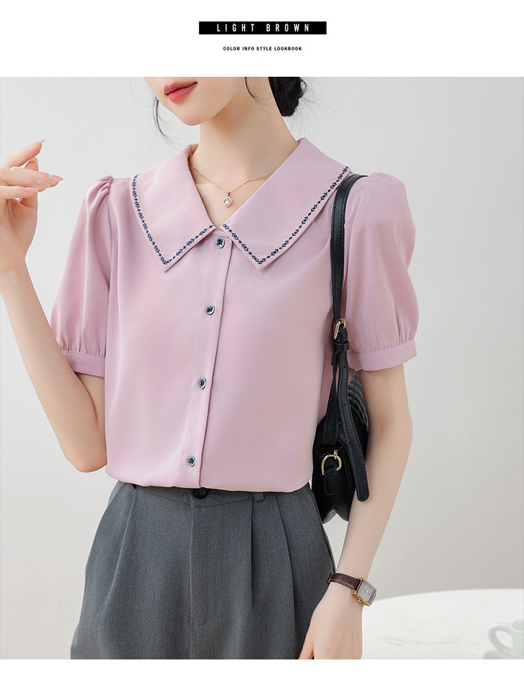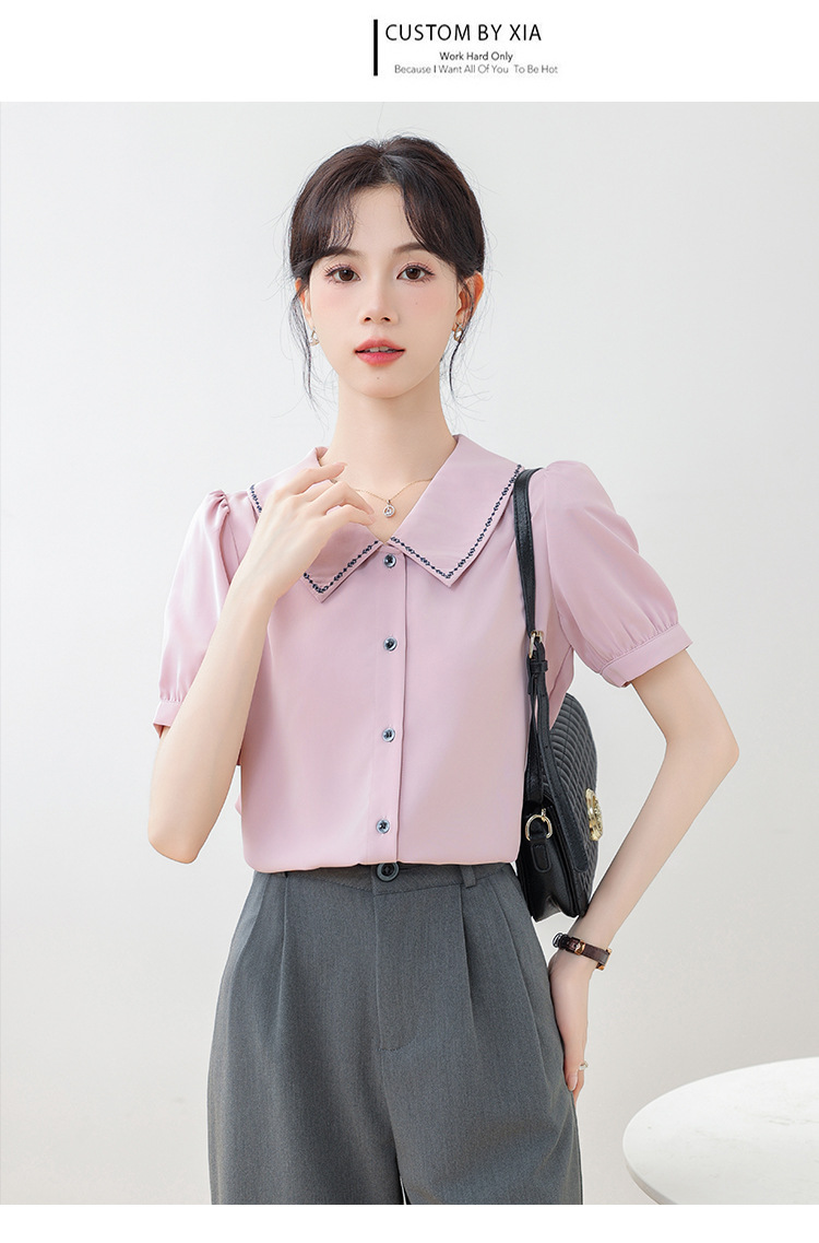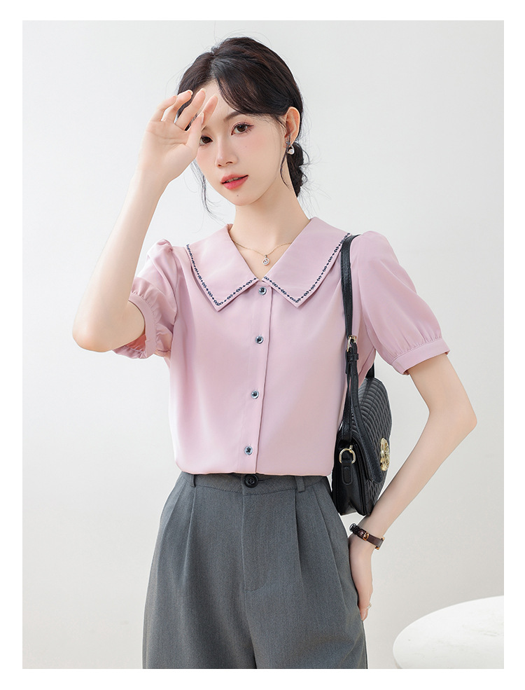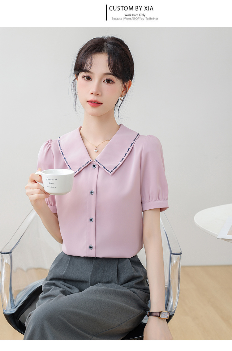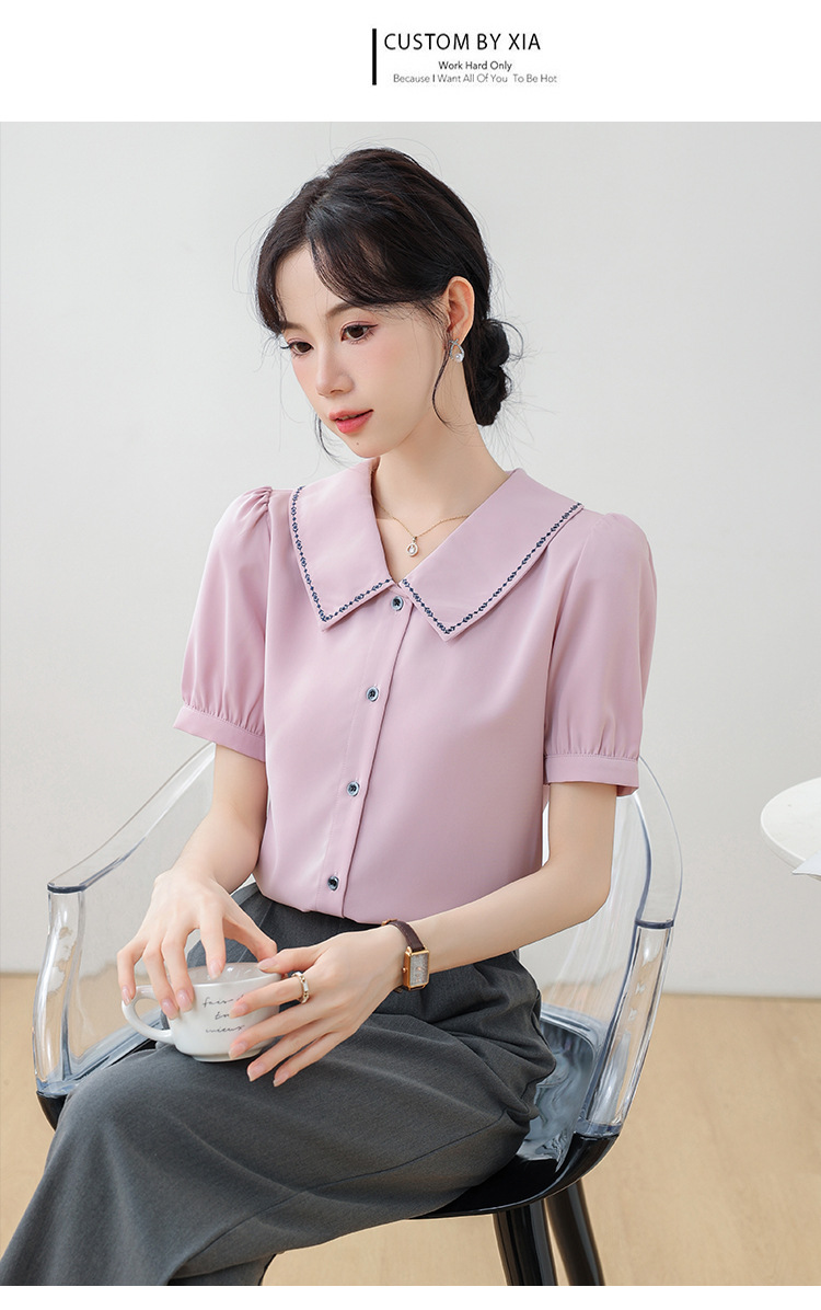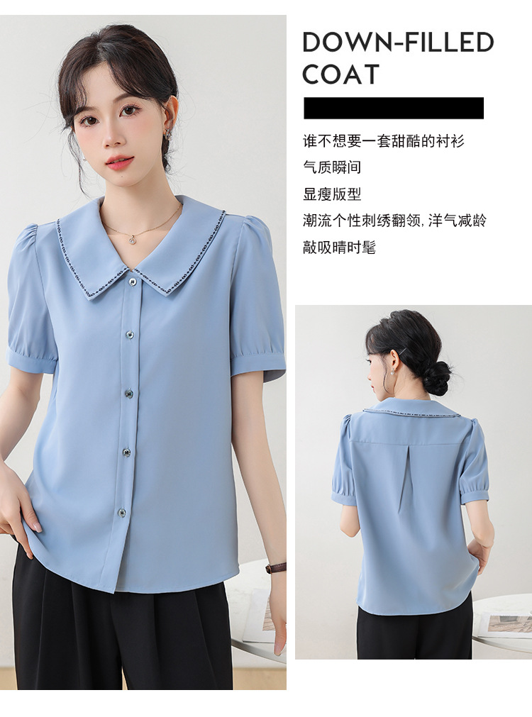 리얼 샷 반팔 셔츠 여성 디자인 센스 틈새 2024 여름 새로운 우아한 슬림 자수 랩 탑