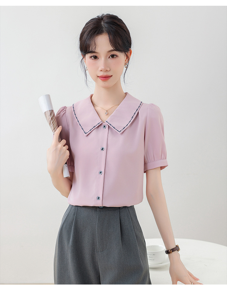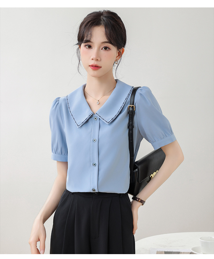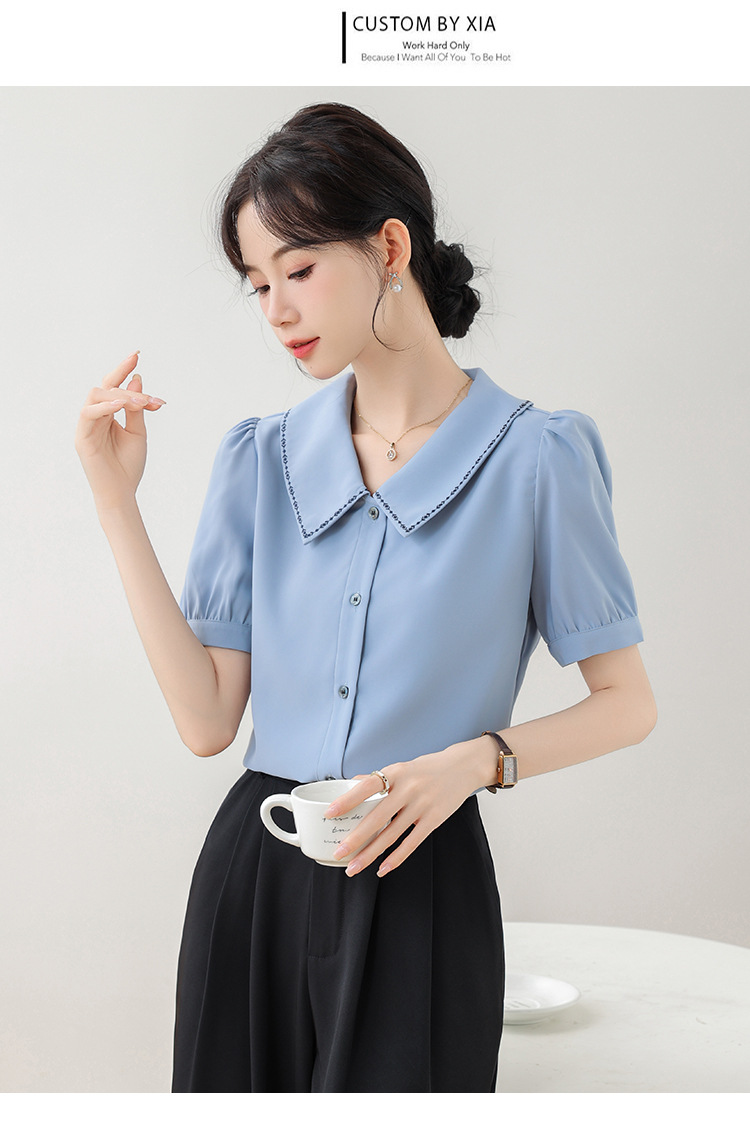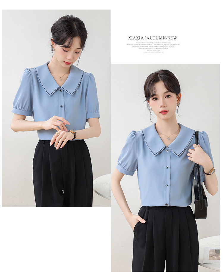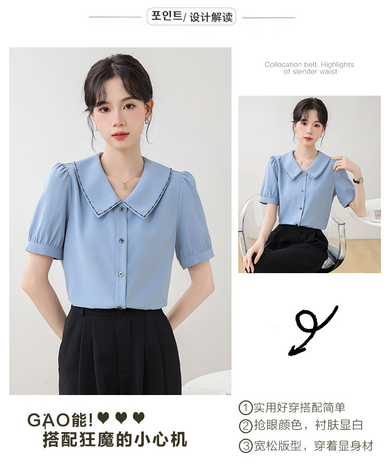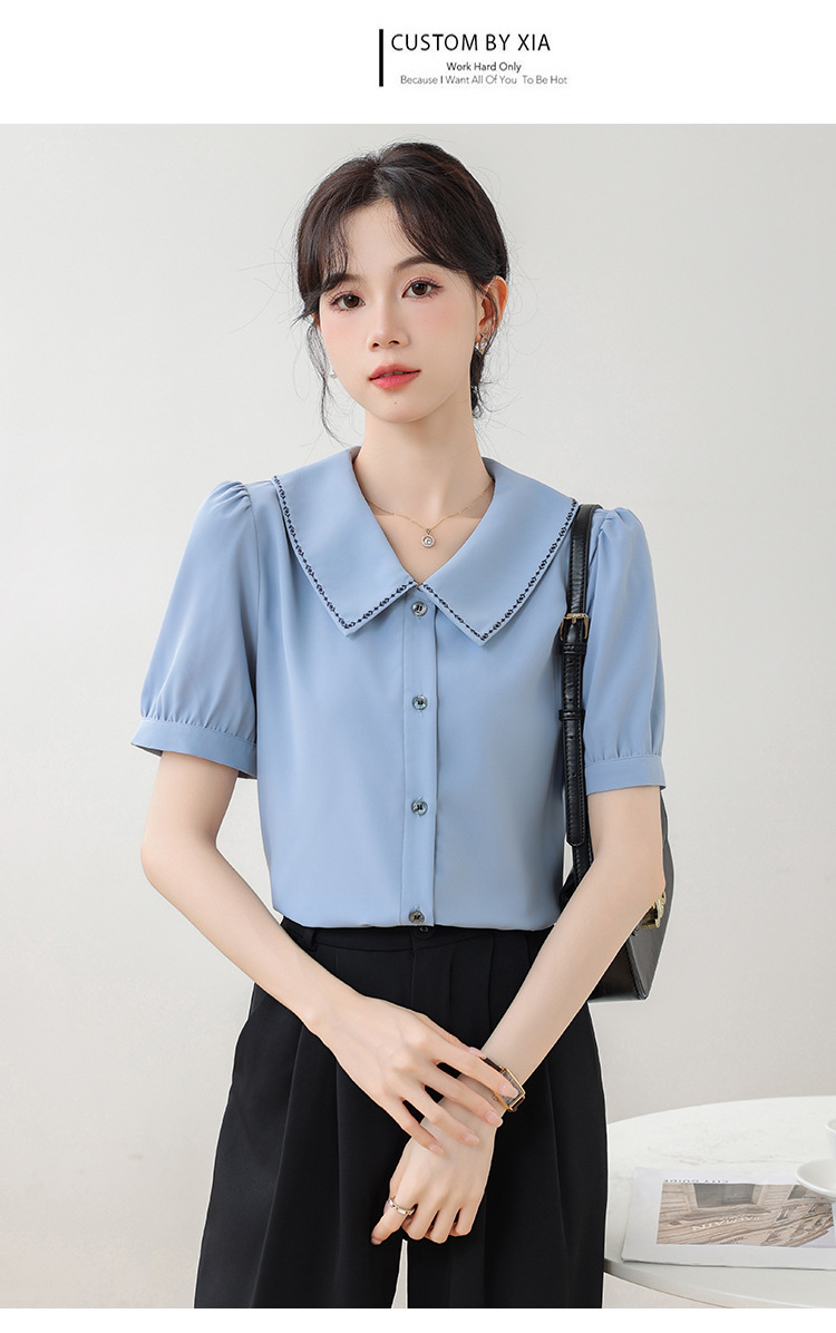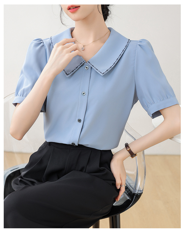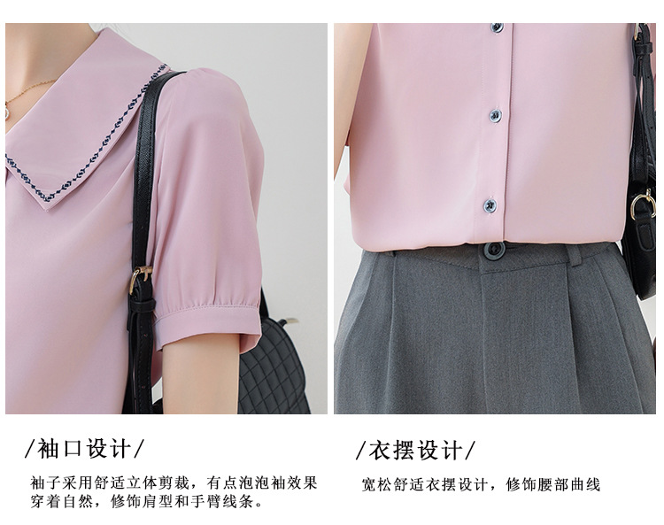 리얼 샷 반팔 셔츠 여성 디자인 센스 틈새 2024 여름 새로운 우아한 슬림 자수 랩 탑