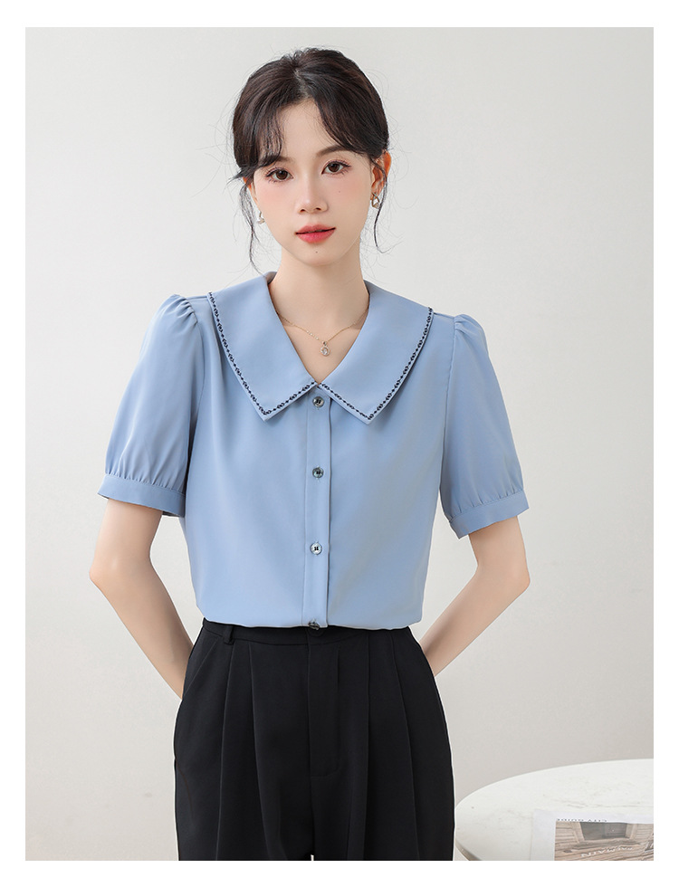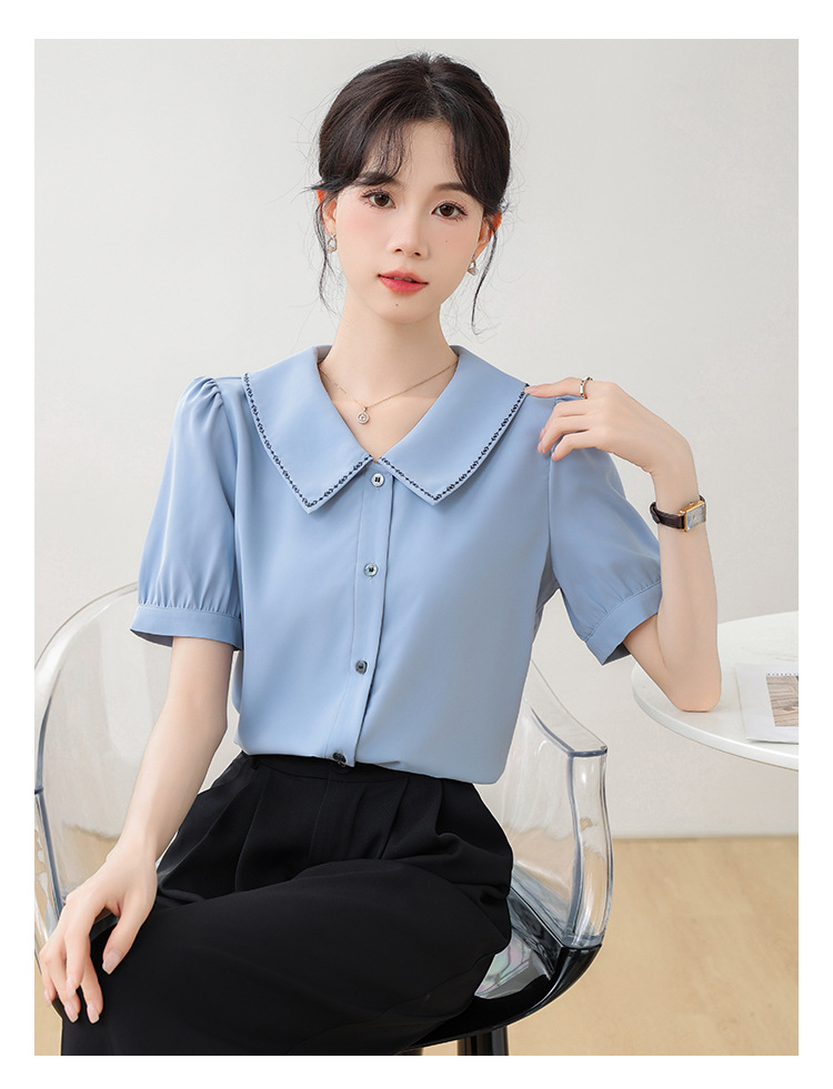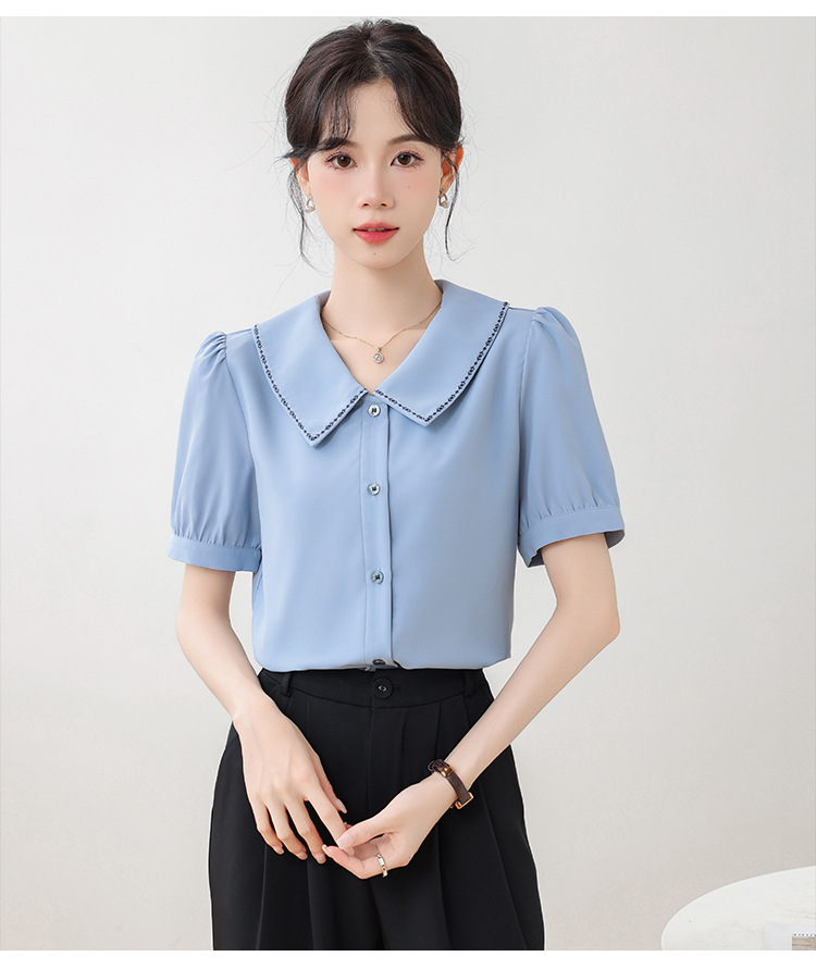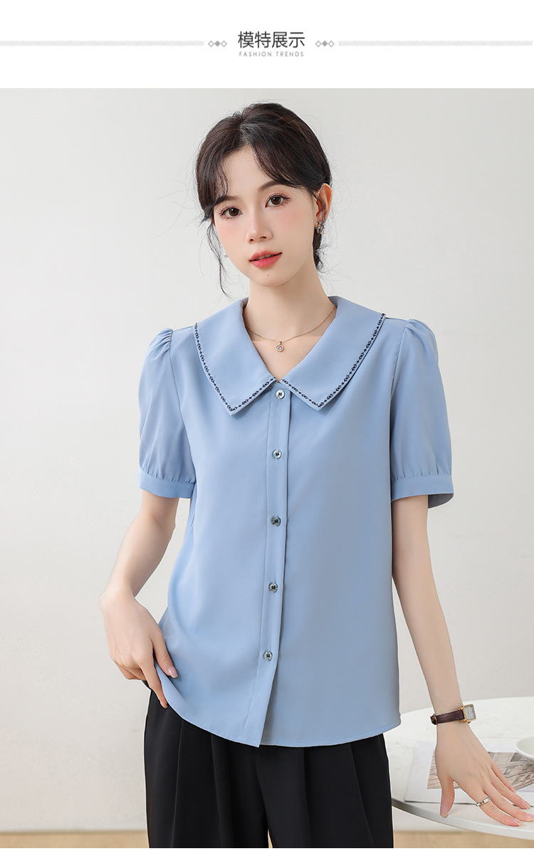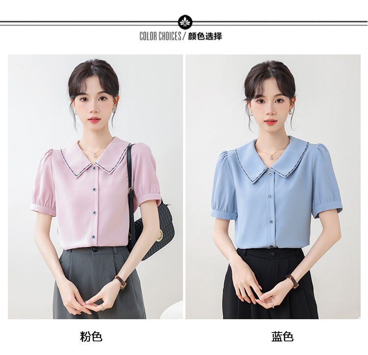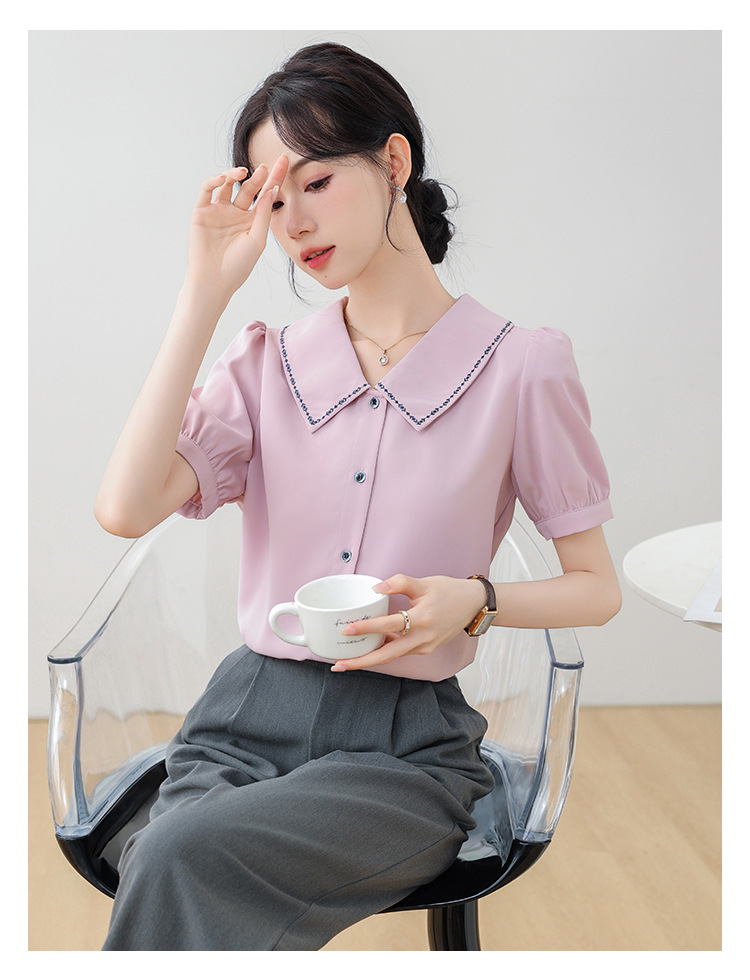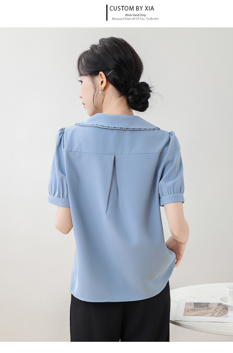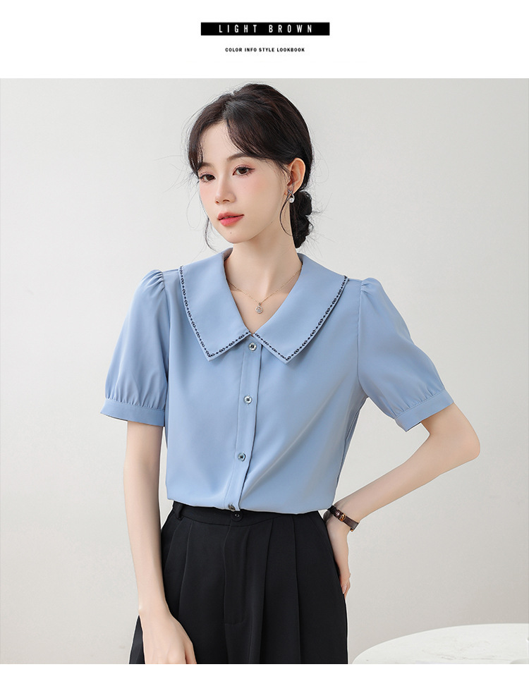 리얼 샷 반팔 셔츠 여성 디자인 센스 틈새 2024 여름 새로운 우아한 슬림 자수 랩 탑