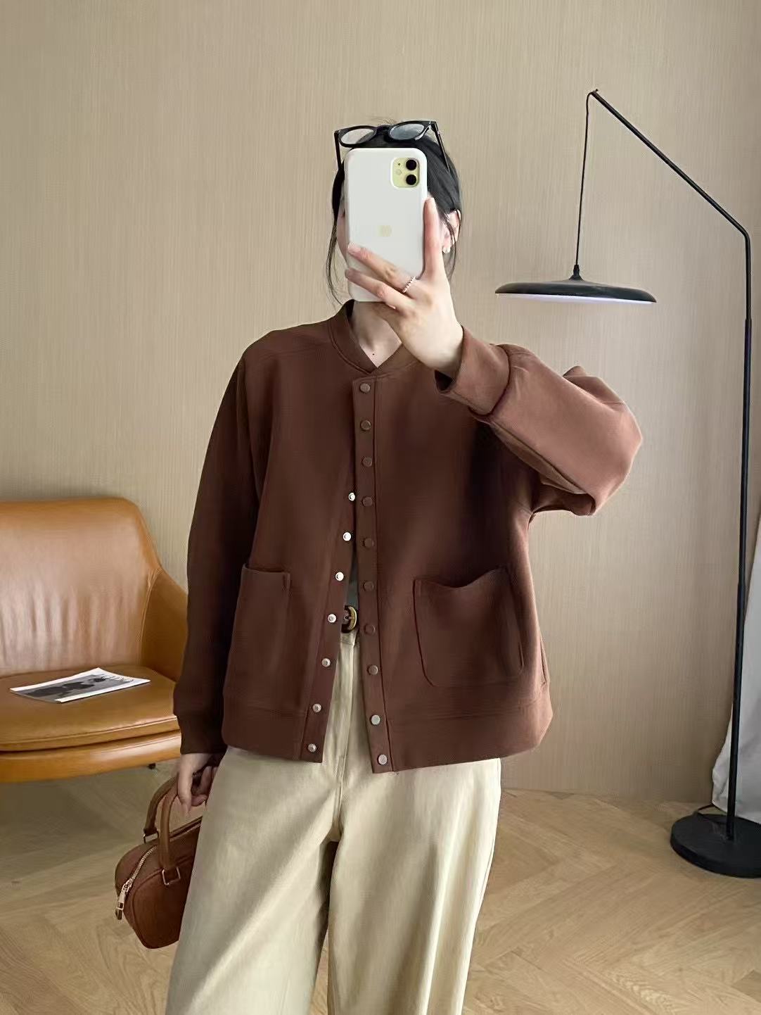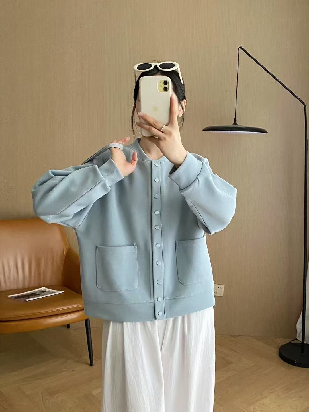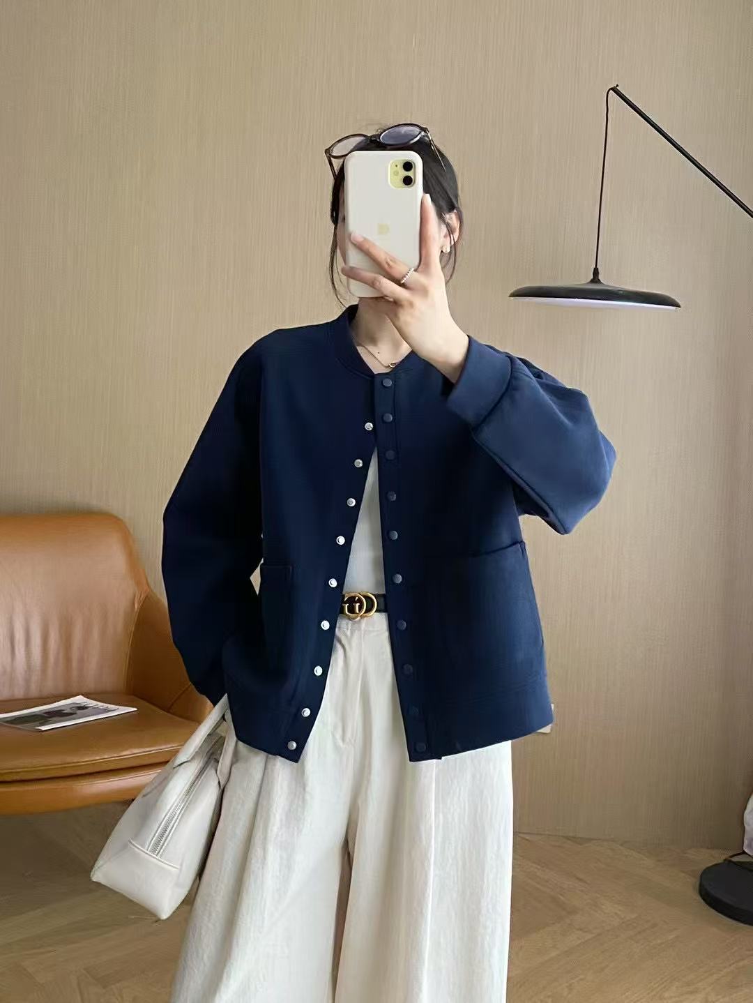 봄 2025 새로운 한국 스타일 유행 라운드 넥 야구 세트 코트 여자 짧은 싱글 가슴 재킷 카디건