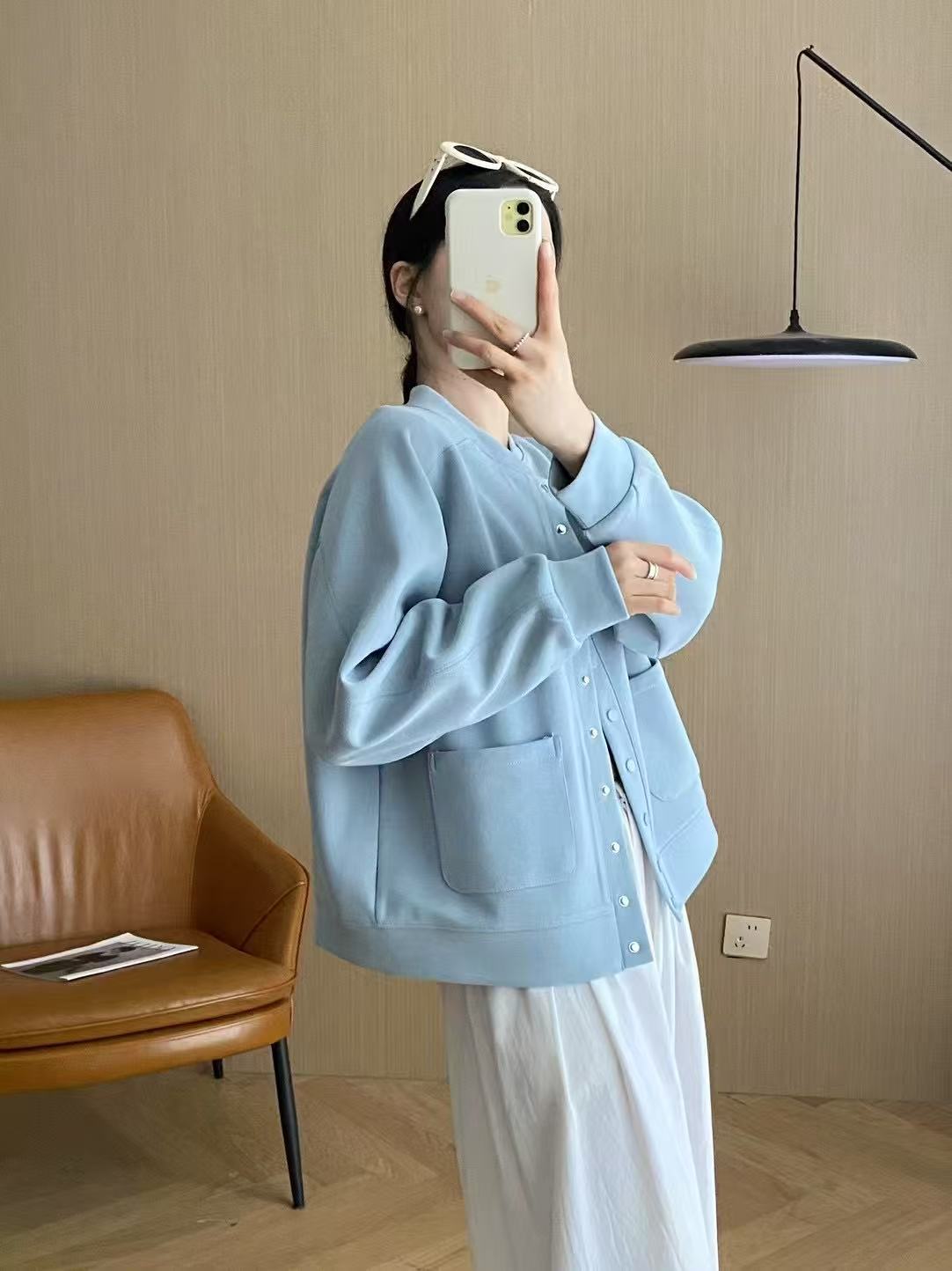 봄 2025 새로운 한국 스타일 유행 라운드 넥 야구 세트 코트 여자 짧은 싱글 가슴 재킷 카디건스토어 가기