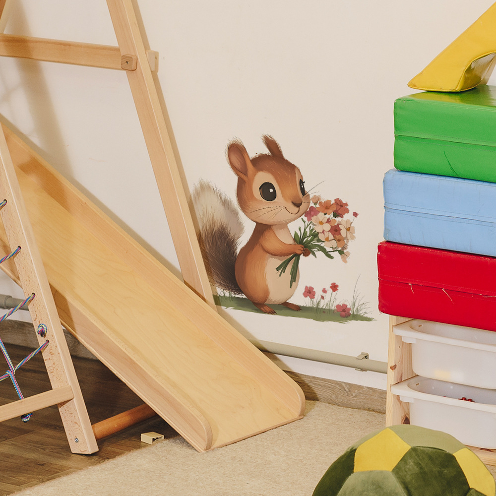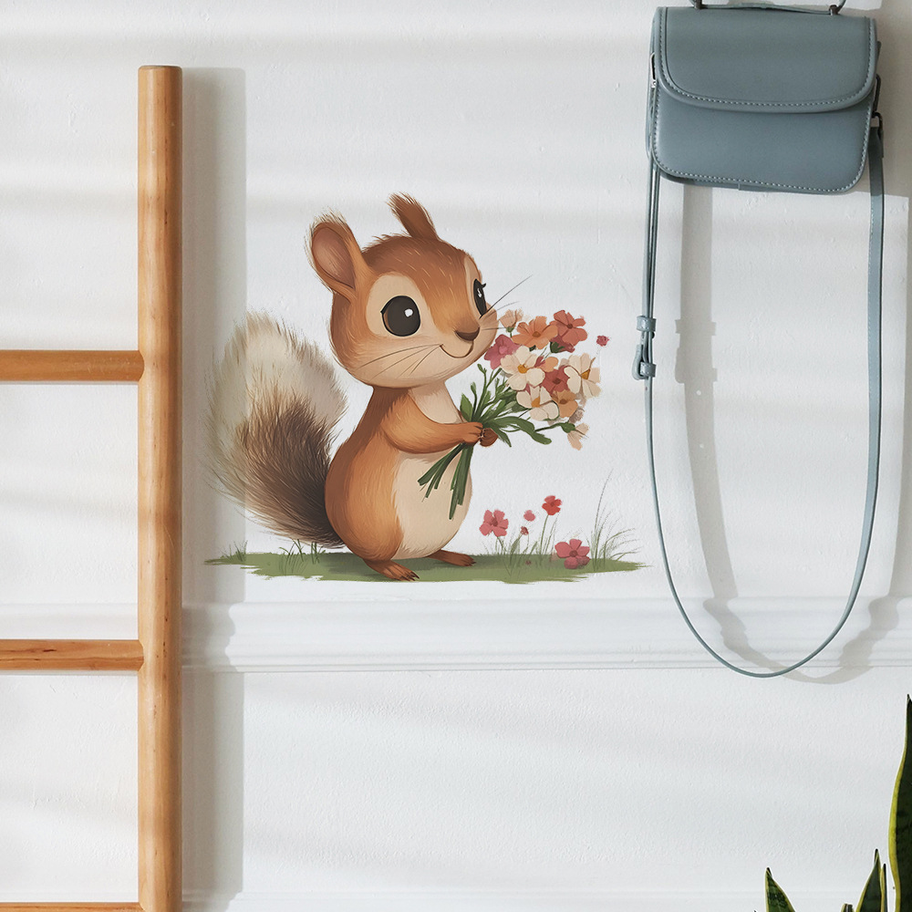 Fun-f539 만화 다람쥐 꽃다발 침실 거실 집 벽 배경 미화 장식 벽 스티커 도매스토어 가기