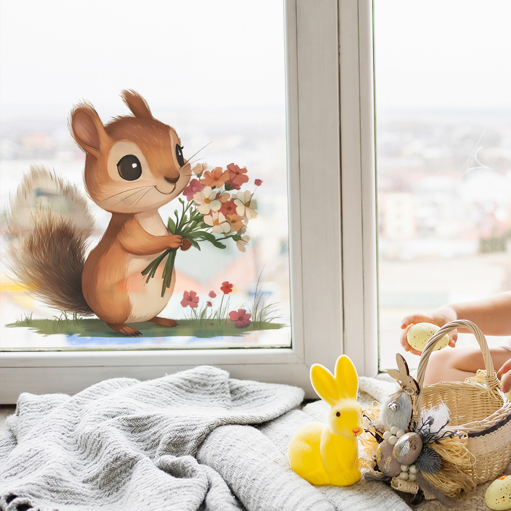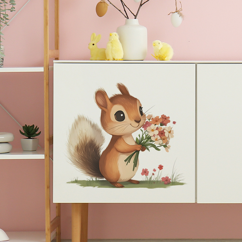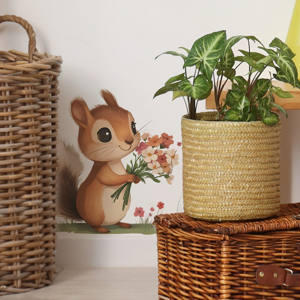 Fun-f539 만화 다람쥐 꽃다발 침실 거실 집 벽 배경 미화 장식 벽 스티커 도매