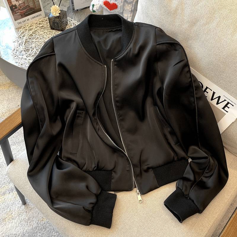 코트 짧은 지퍼 재킷 패션 캐주얼 플라잉 여성 스포츠 톱 봄 2025 서양식 어깨 패드 야구 세트스토어 가기
